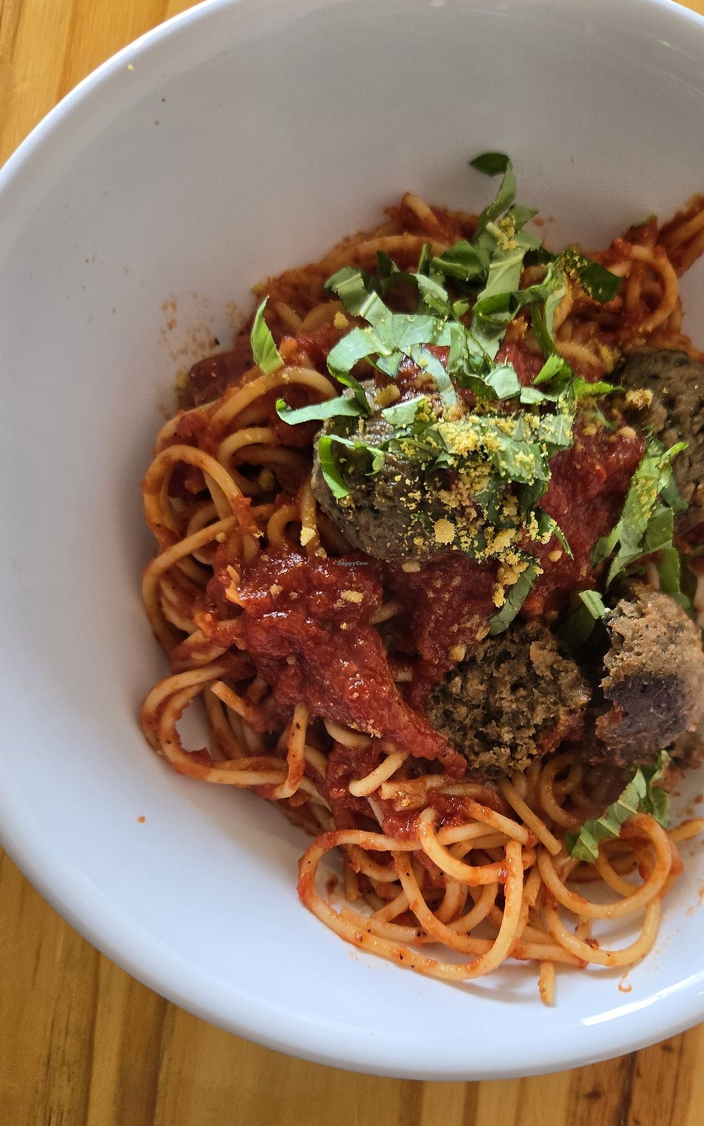 To be clear, it was all excellent! We started with Jackfruit Nachos - spiced just right. Used a provided hot sauce (also super good!), with added jalapeños. Not enough jalapeños on nachos, though. Then Truffle Mac Cheese (really pretty with several toppings, very tasty)and spaghetti arrived. Nice and spicy and texture just right! Then our two tacos came, one Bulgogi and one winter squash taco - the surprise of the meal! Squash with a hefty amount of avocado and a tangy sauce. Very yum! Finally, except the chocolate chip cookies (crisp outside and moist inside with plenty of chips!) and raw truffle chocolate cheesecake, (Don't let raw throw you. Raw dessert is spectacular. ) our main meals arrived. Crspy korean Brussels sprouts was very good! Crispy jackfruit burrito could have been crisper, but was tasty and was served with fermented green salsa. So good! And the simply gorgeous polenta cake, with mushroom ragu, dressed arugula, served with pesto and raw cheese sauce, pumpkin seeds, really pretty and delicious. They could substitute white balsamic in the vinaigrette to keep the arugula green and clean. Also, the only con we have is that the chefs are afraid of salt. Everything needed salt. And we did not enjoy the potato with coconut flavor. Didn't work. Otherwise, we'll be back! Felt like a tasting menu at Millennium restaurant in SF. Thank you!