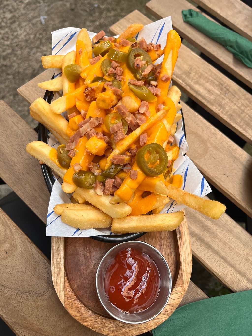 A lovely quiet location right in the centre of Bath. If you want to get away from the hustle and bustle of the high street pop down the stairs to Plant.Eat.Licious. We shared a dirty fries and a slice of Jaffa Cake Cake. They were both very nice.
