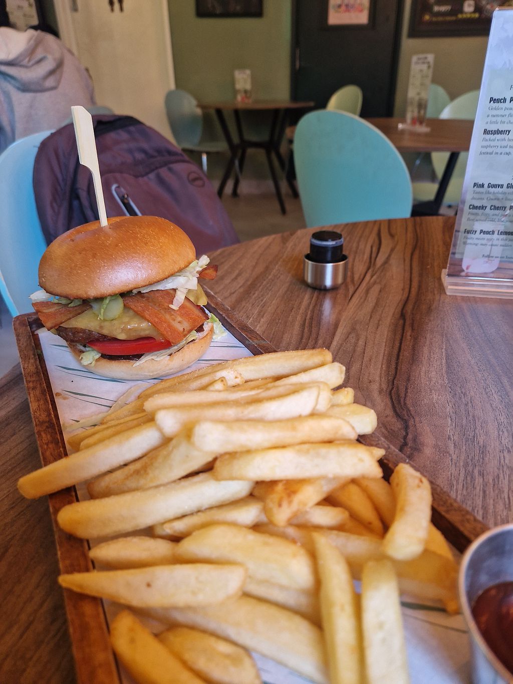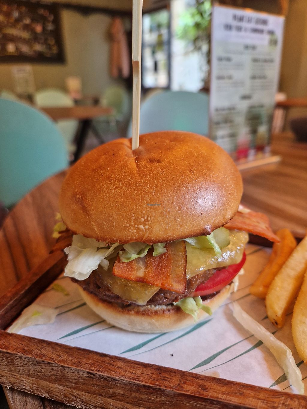 Went here on a wet Sunday afternoon and was met with a delicious menu - we had a burger, smoothie, and the biscoff cheescake. Left very full! The staff were super friendly, and the atmosphere was good. Not too noisy, beautiful green decor. The toilets were bigger than expected too! Would deffo return.