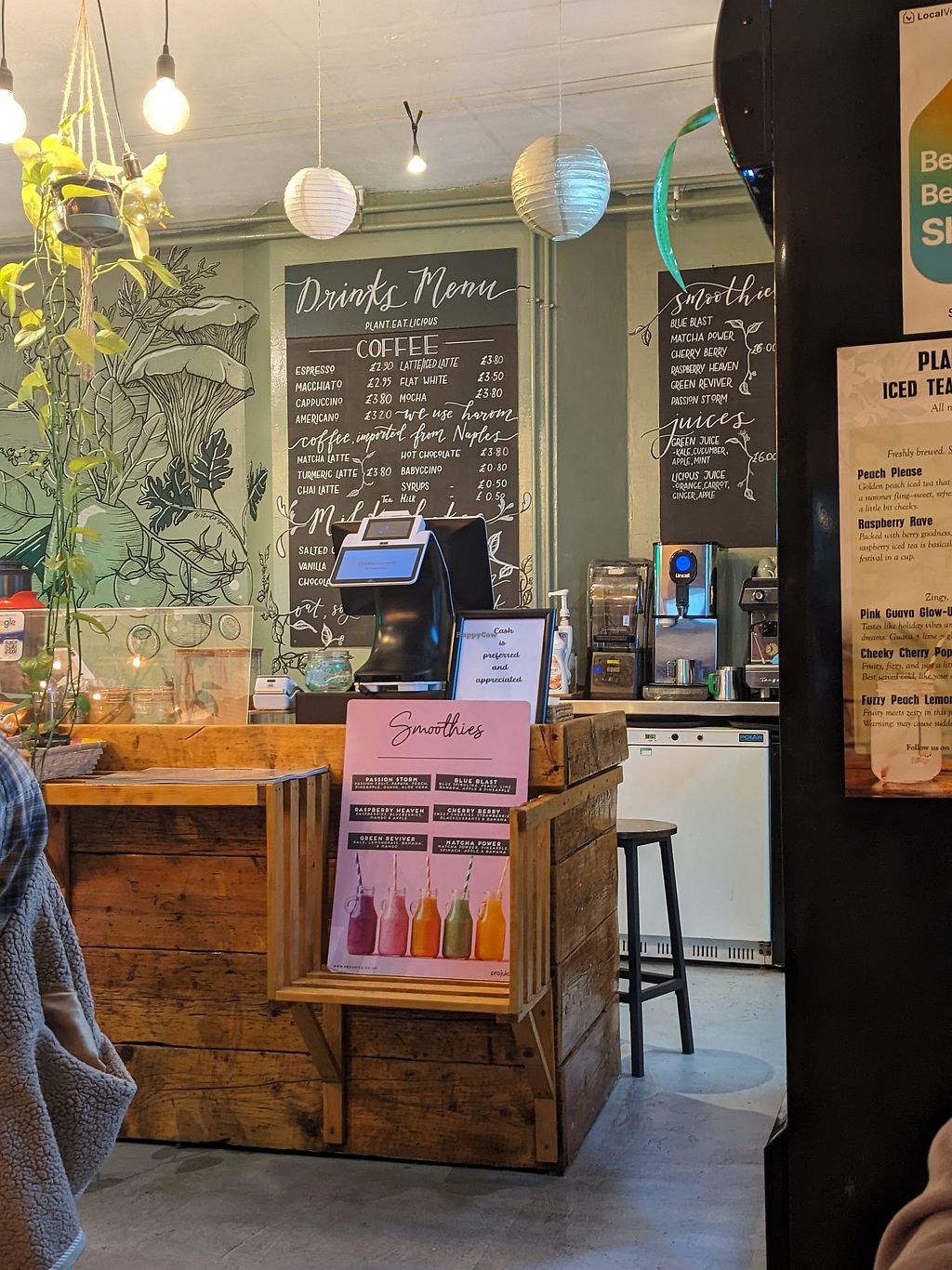 great seating indoor and outdoor with sooo many food and drink options! highly recommend as it’s one of only two fully vegan cafes in bath