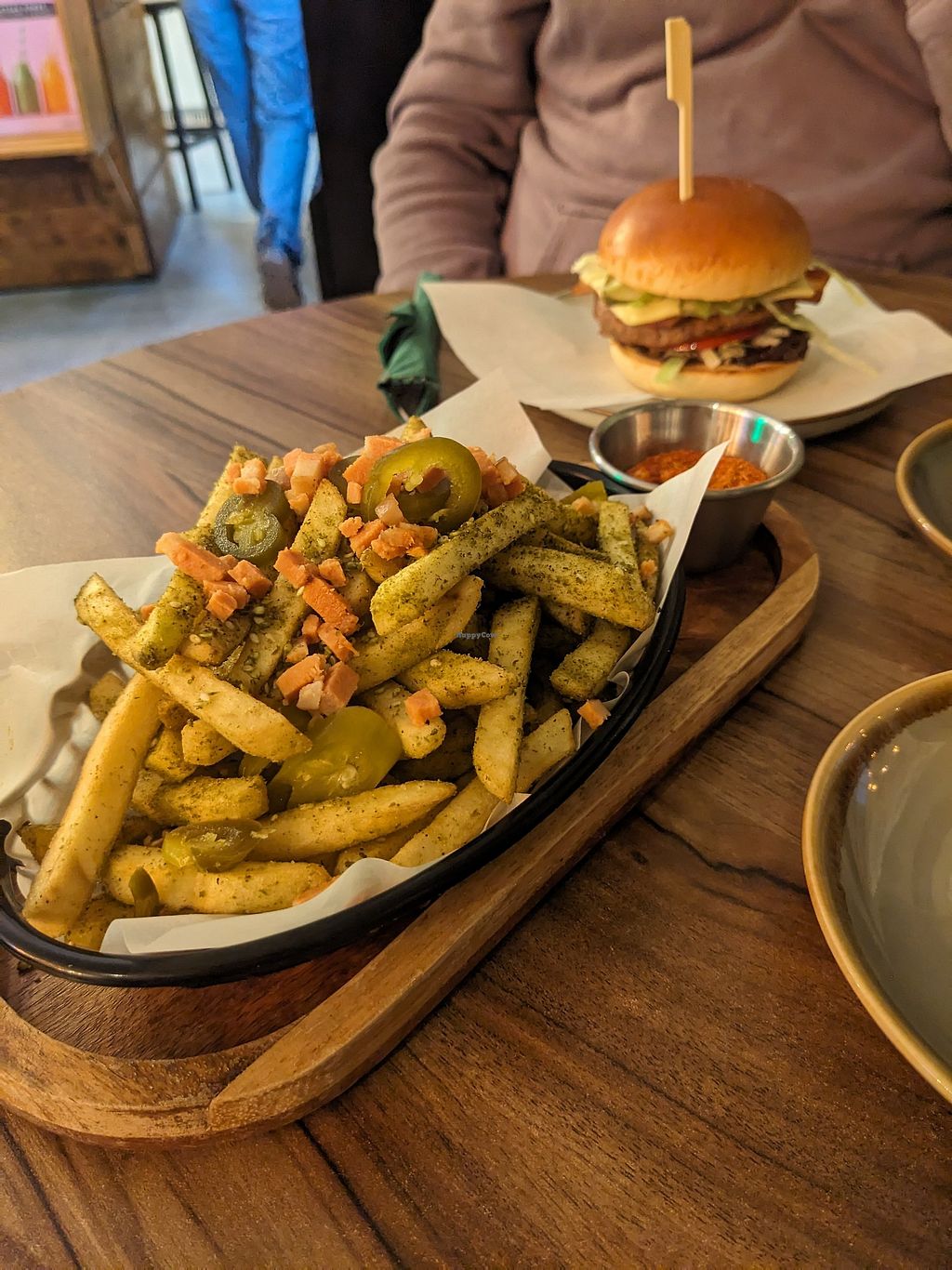 Lovely little fully vegan place, really good choices on the menu, not too many and nice selection, staff really friendly. We enjoyed the burger and the chicken burger and the dirty fries to share with a lovely spicy topping. Yummy matcha and tumeric lattes too. Forgot to take a photo of the menu. It's Bath so not the cheapest but it's central!