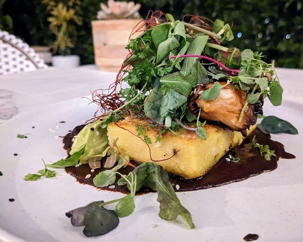 CHIPOTLE GLAZED MAITAKE MUSHROOM Charred Sweet Corn, Sesame Mole