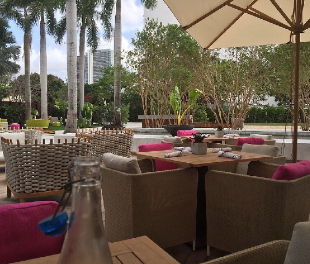 We had lunch here on the patio. The setting was extraordinarily lovely. It's a bit off the beaten path near the Wynwood area. I had the green gazpacho and coconut chorizo tacos. The dishes were all delicious. Also had a mango dessert that was tasty. As with all raw restaurants, when you finish you feel like you've eaten the largest salad ever. My omnivore husband didn't like as much as I did. Cost for 2, no wine, 1 dessert, including tip, was $107.