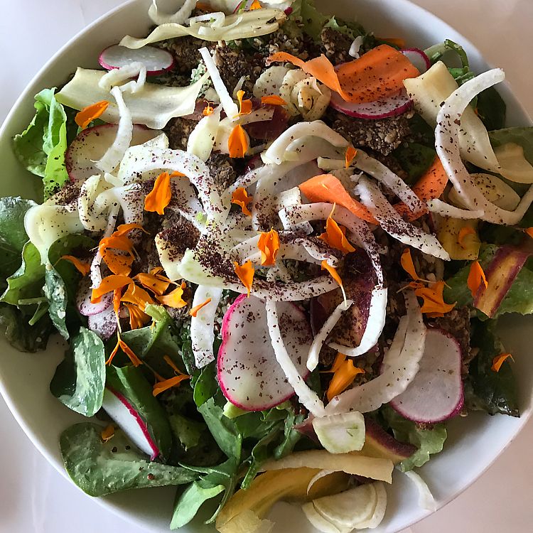 My partner and I have been here a dozen times and are continuously in awe of the beautiful crafted and delicious dishes we have. The cacio e pepe is incredible, it's their take on a raw vegan and gluten free fettuccini Alfredo pasta. The zucchini lasagna, kimchi dumplings, and bahn mi lettuce wraps are to die for. As well as all the delicious desserts. Not a place to be missed! They also have a culinary academy in the back that is incredible .