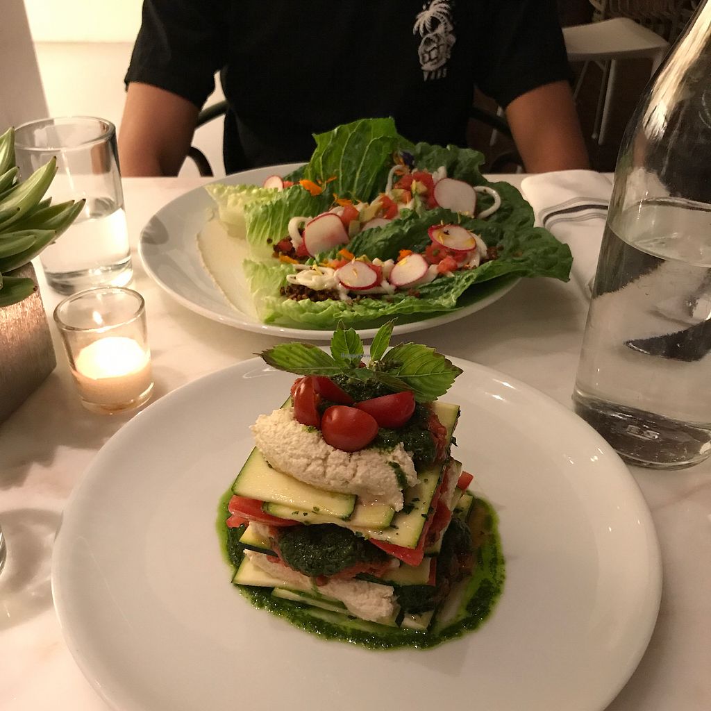 In response to the negative people who are complaining about this restaurant, they clearly seem to be the type who will complain about everything. I have lived all around the country and the world and have eaten that all of the best vegan restaurants on the planet. Matthew Kenney is a food genius. And I am not a raw vegan or an overly healthy vegan. But I could eat here every single day and when it first opened, I was there every day. The Cacio e Pepe, zucchini lasagna, cheese plate (add the blue cheese), and kimchi dumplings are musts. They change the dessert menu often but if they have the cheesecake, you have to get it. The key lime desserts are amazing as well. The only two things on the menu that I was not a big fan of were the hearts of palm and the coconut tacos. And I have tried everything on the menu. Everything else is absolutely amazing and the only reason I might not love the 2 I mentioned as much is because everything else at the restaurant is the best thing you've ever eaten. 💯