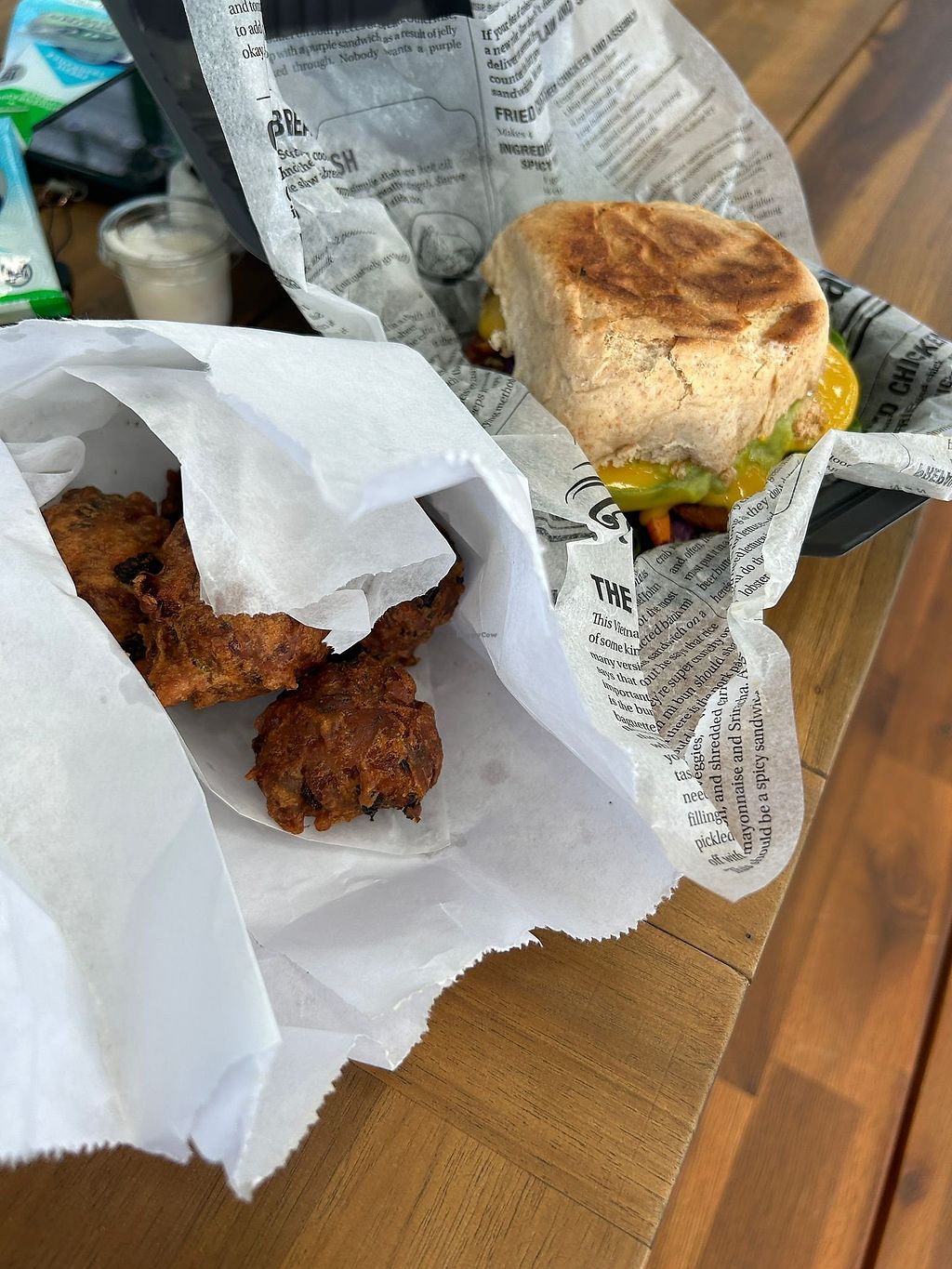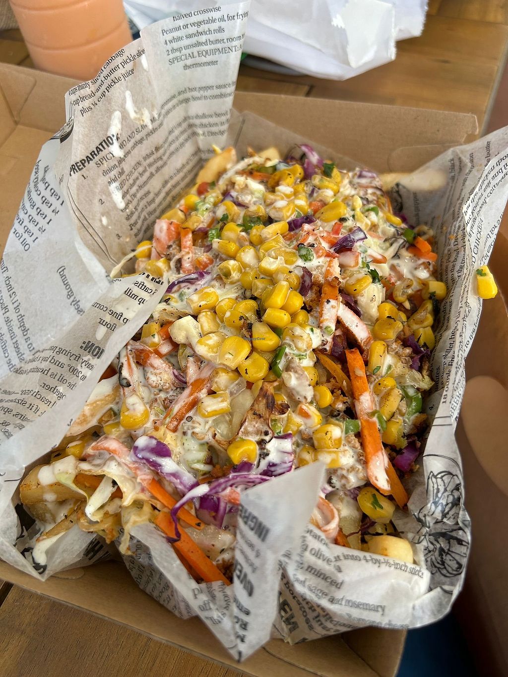 Ordered two bean and mushroom burgers with chips and corn - so good!! The spice mix and sauce on the chips was amazing. Burger was great with loads of good toppings. It’s in a lovely place as well with lots of cute stalls to mooch around whilst you wait. Would 100% recommend ❤️