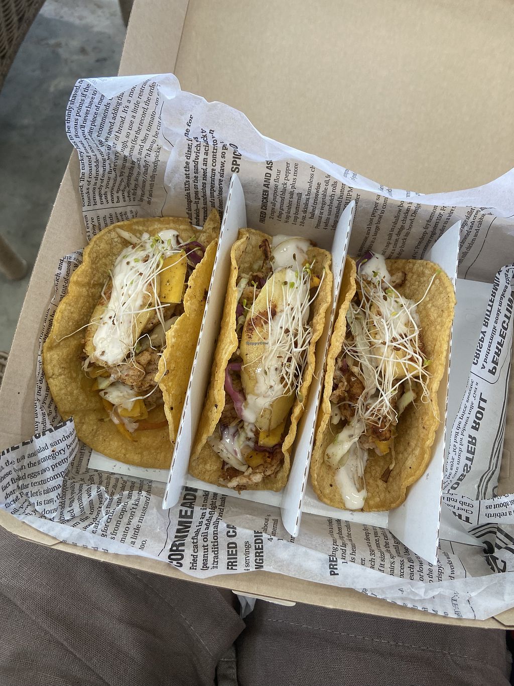 Really cool to see an all vegan food truck! I got the tacos (they ran out of jackfruit, so I had “chicken mushrooms” instead- tasty) and my partner got the breakfast fajita! Both were tasty, but we definitely waited 30 min for the food.