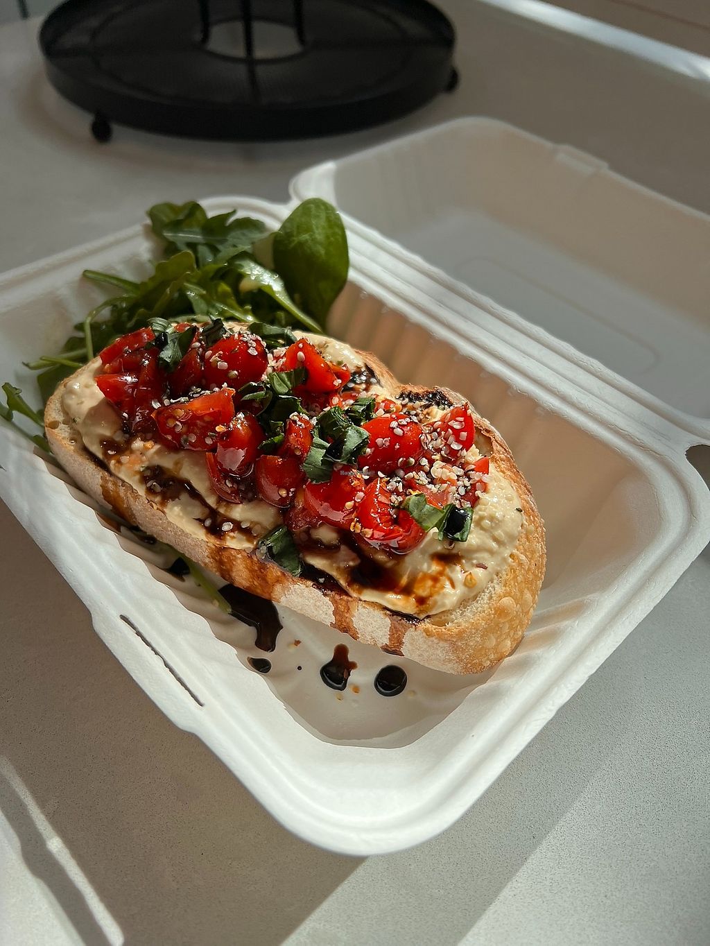 SUPER SOUL LOADED TOAST whipped hummus topped with tomato, basil, cru…