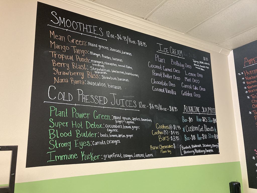Read moreMy husband got the fish tacos and asked how they were made - they said zucchini, squash, marine plants, seaweed, walnuts and such. Upon receiving them, we had to double check because it totally looked like black bean burger crumbles - crumbly, dark brown, crispy crummies. Not much of a “seafood” flavor at all, despite being served with tartar sauce.. but she did confirm it was the fish tacos. So that was interesting. Still tasty! But didn’t really resemble fish at all.