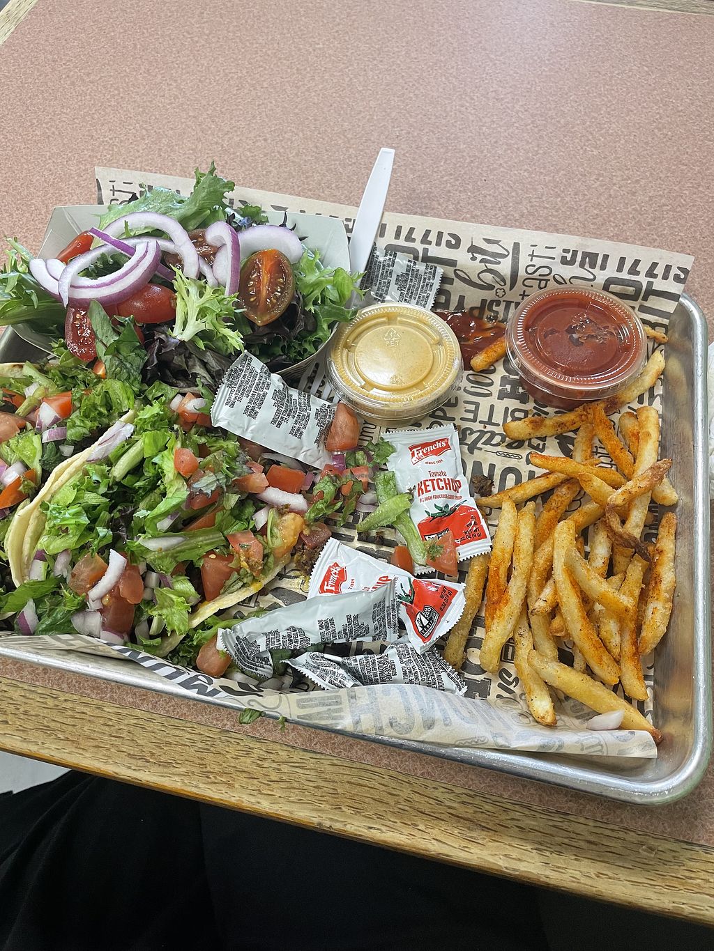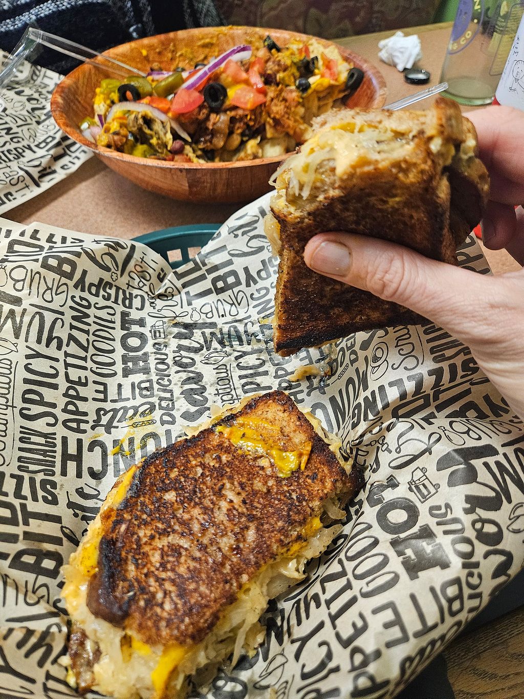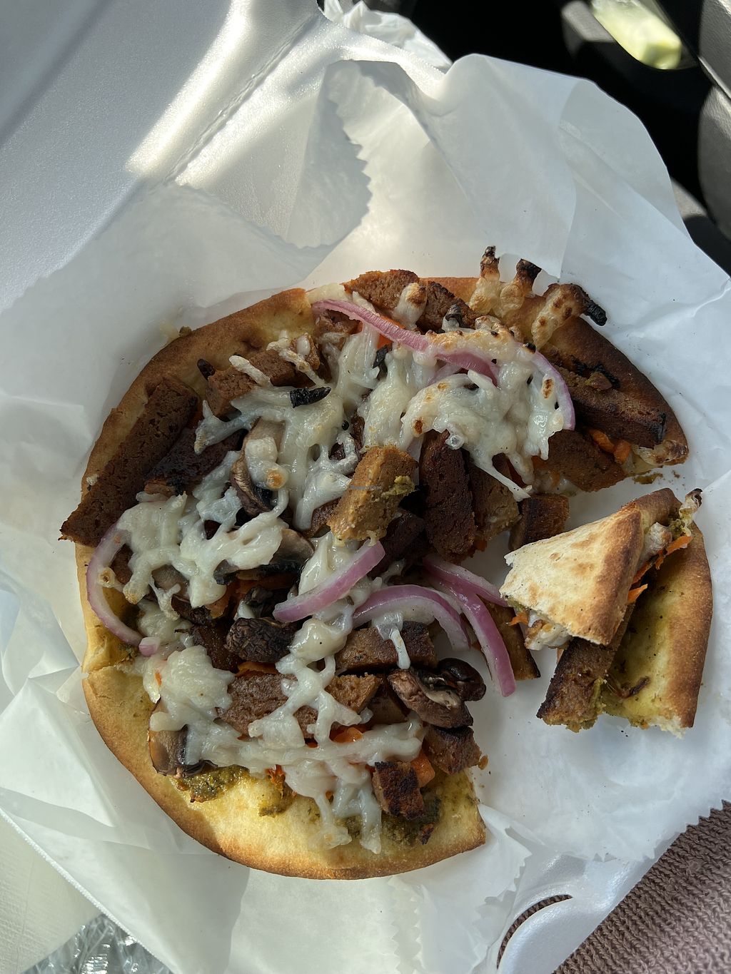 Long-standing lil vegan joint on the outskirts of town. Huge menu with a variety of burgers, sandwiches, tacos, bowls, pizzas, and more. What we got was still so fresh and crisp! Loved it.