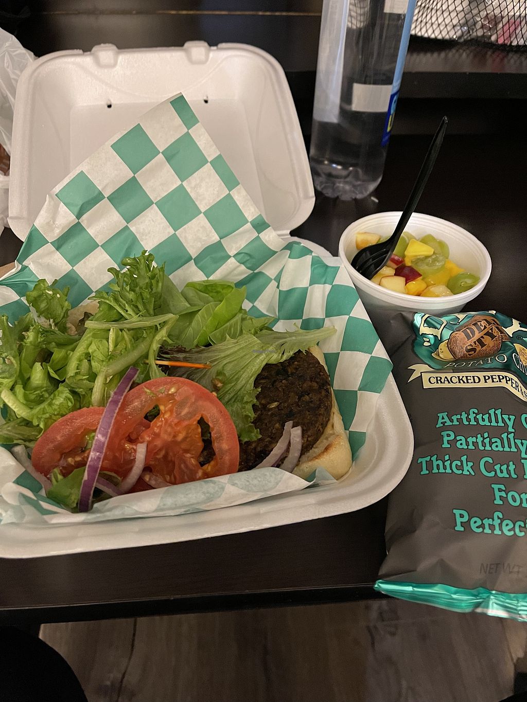 I ordered the black bean burger (spicy) and it tasted wonderful.