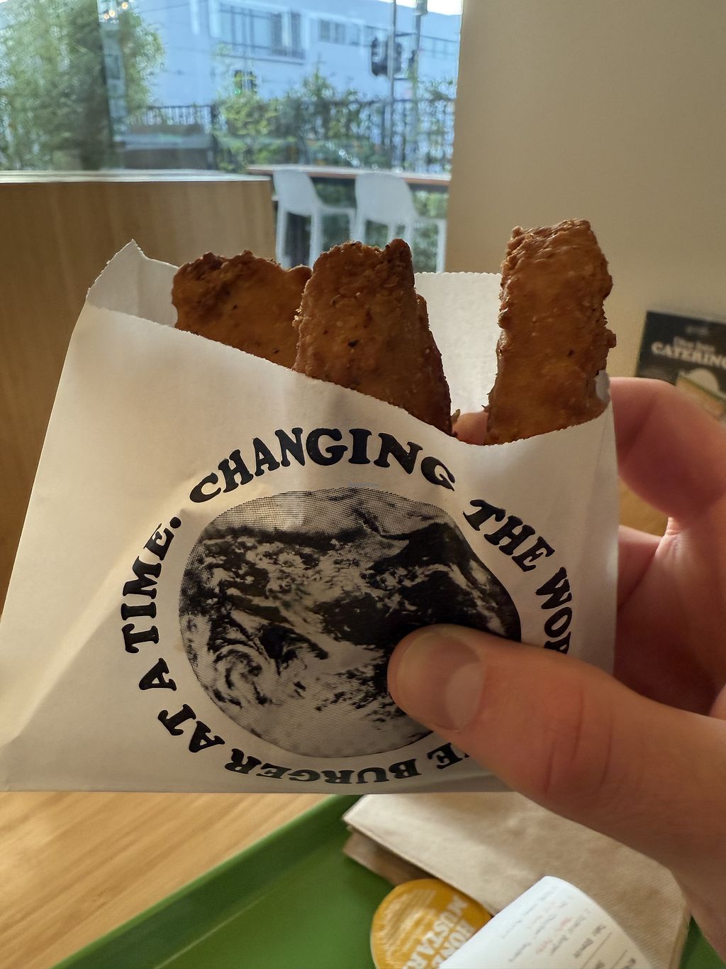 Thought this place was amazing til I encountered their competition. The burger I had was okay - the Caesar salad very good - but the sundae unfortunately, especially given the ‘vegan premium tax’ (i.e. a lot higher than Ronald’s), was very disappointing. While the soft serve is delicious, the sundae topping acted more like a gently sprinkled garnish than actual flavour, and was long gone by the end of the cup.