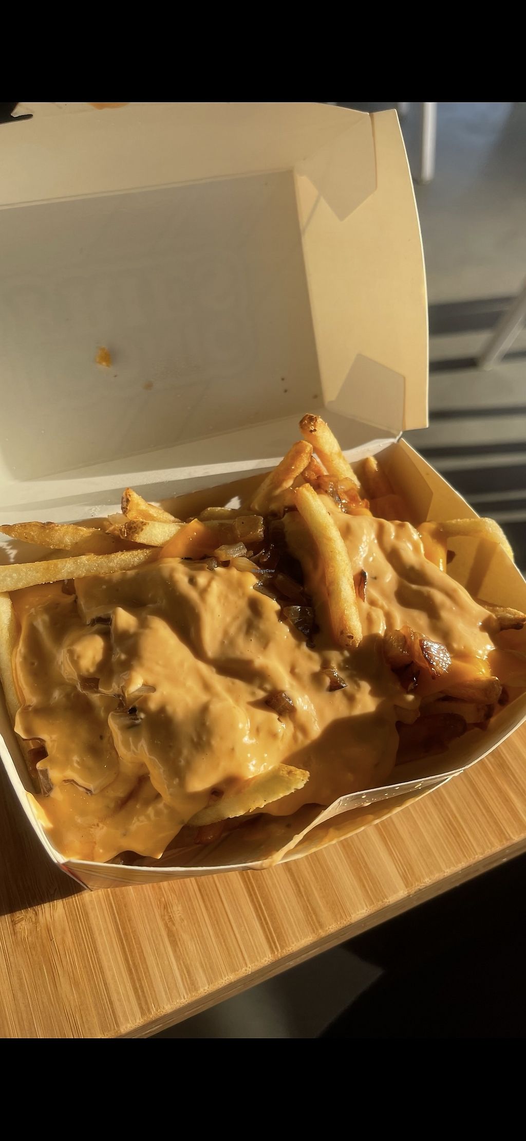 They have really cool options, like loaded fries with authentic v. cheddar cheese.