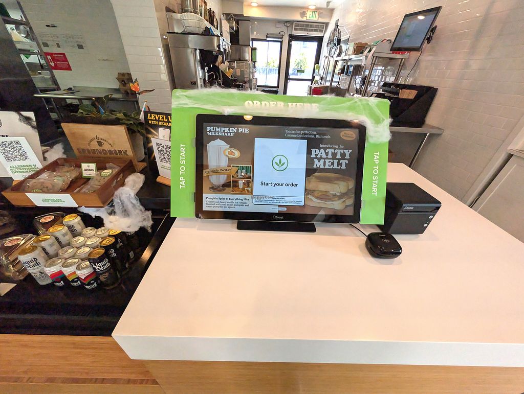 Friendly staff, very good off street parking for a downtown location, beautiful interior, self ordering kiosks