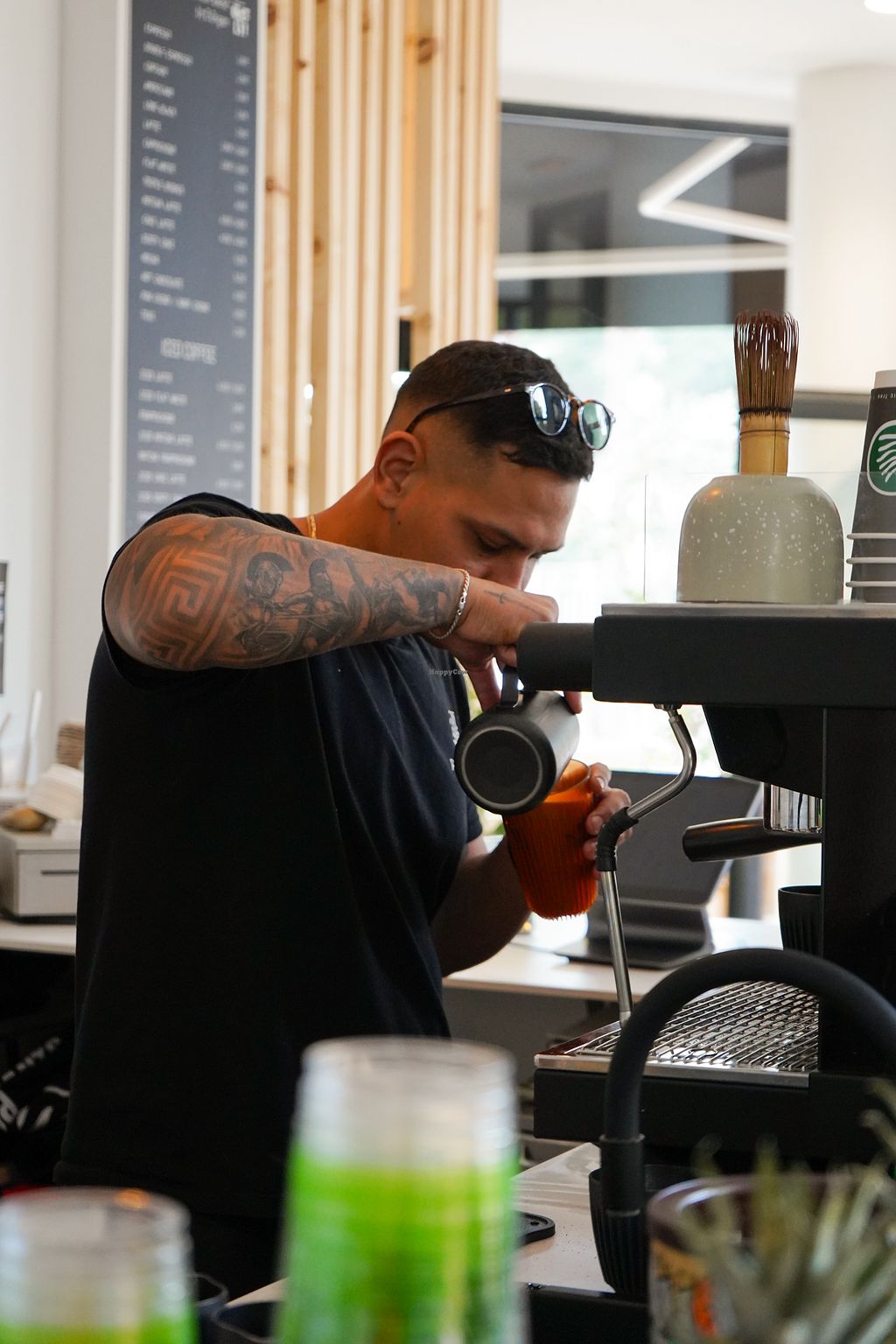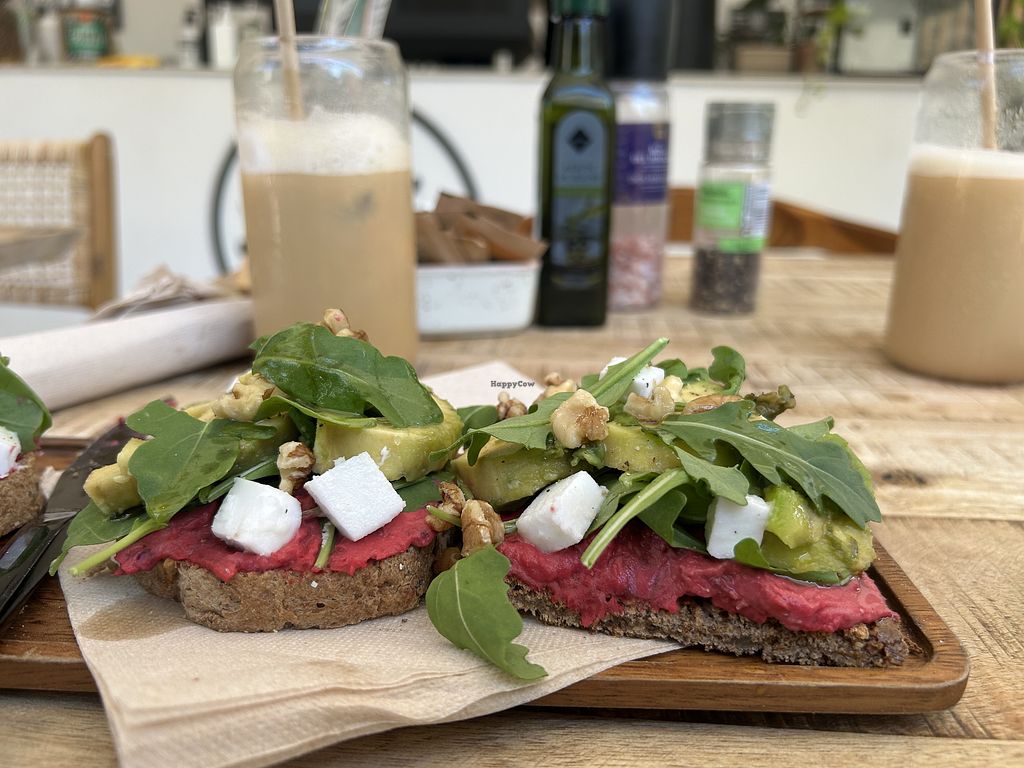 Fully vegan establishment. Options of sandwiches (can be toasted), smoothie bowls, toasts, cakes. Raw juices, coffees, matcha etc. everything is made fresh and is delicious. Allergens are noted on every item and options to swap to a Gluten Free version are available!