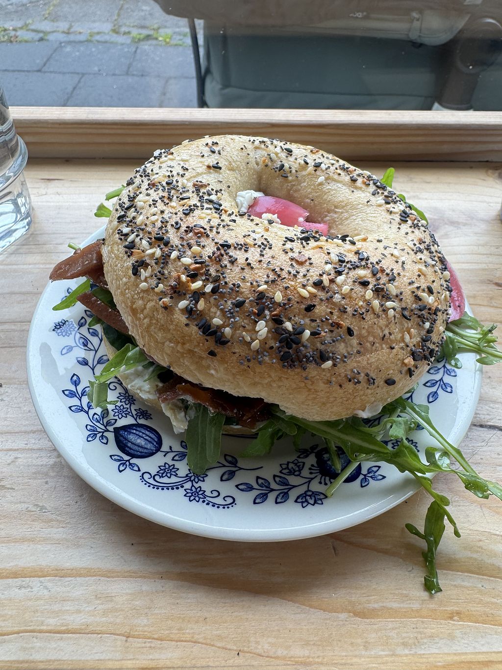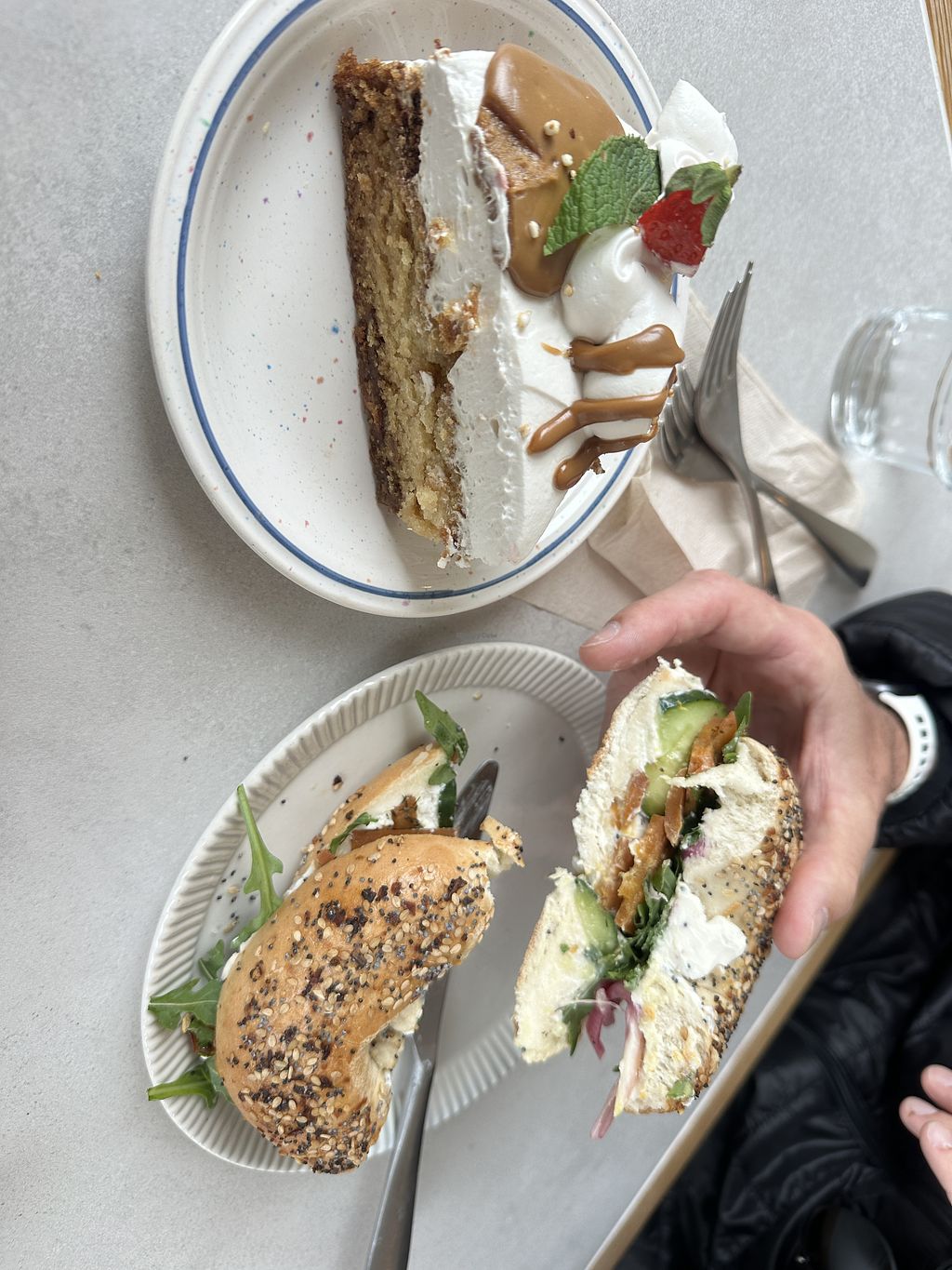 Bagel with smoked carrot and HEAVENLY Biscoff cake