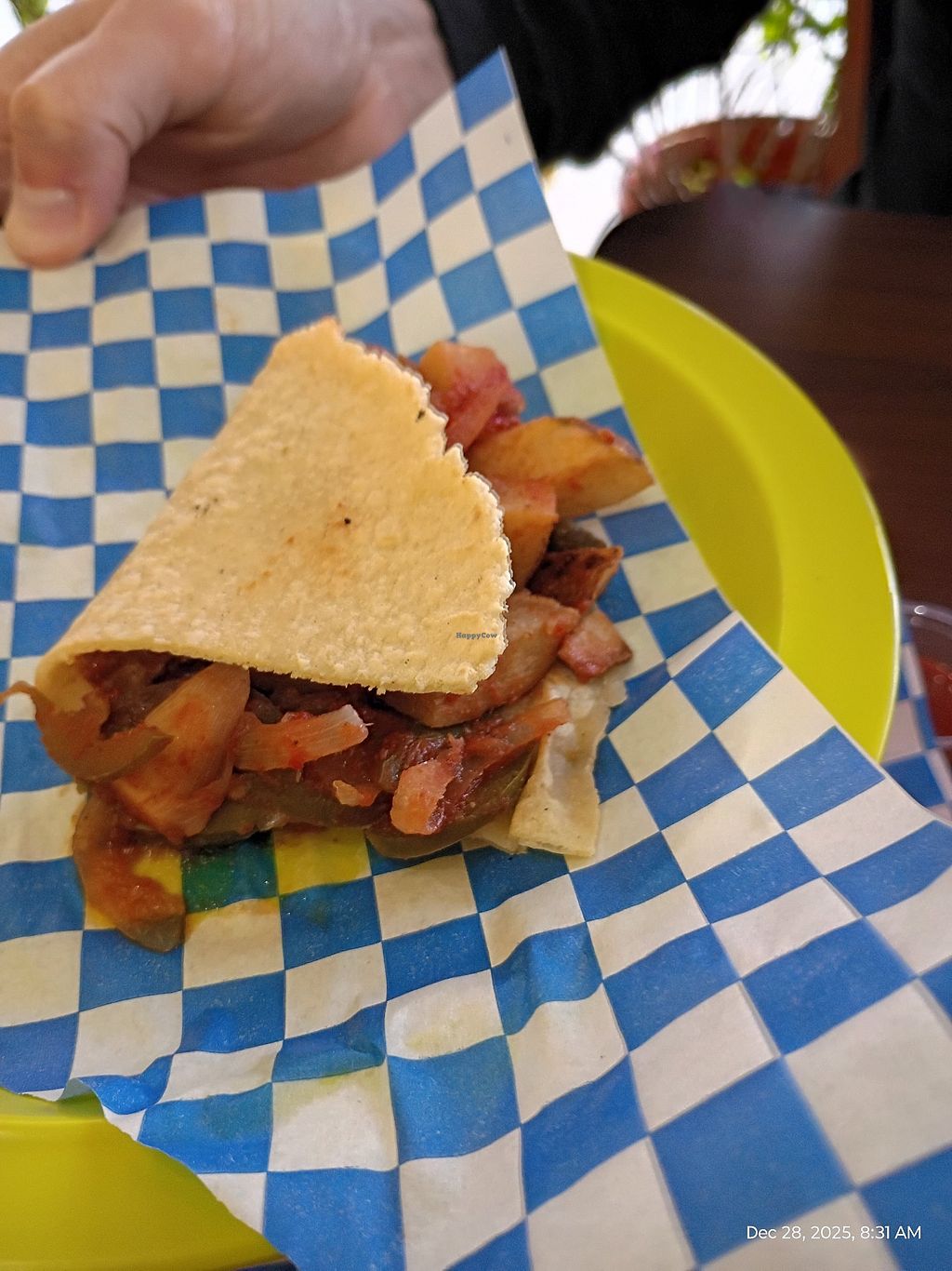 The corn tortillas they make are so good. Thick and delicious. Plenty of fillings to choose from. I tried the jackfruit, soy chicken, refried beans, eggs and potatoes. All very good. The horchata coffee blend was perfect. Not too sweet. Juice was too sweet for my taste.