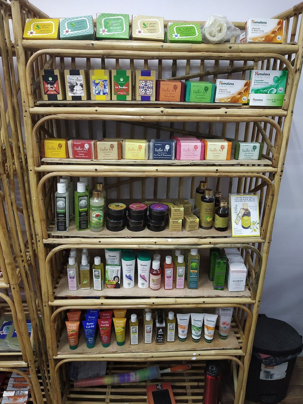 The shop part is a bit small, but seems to be about 90% Indian made products. They stock vegan ghee, butter, curds, ice cream, soaps and lotions, cosmetics, protein powder, cleaning supplies, chocolates, mock meats, and more. Some of these products are made in house or locally in Hyderabad.