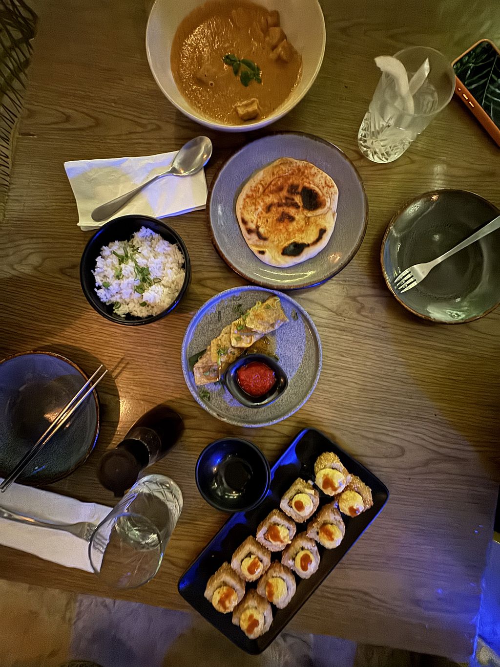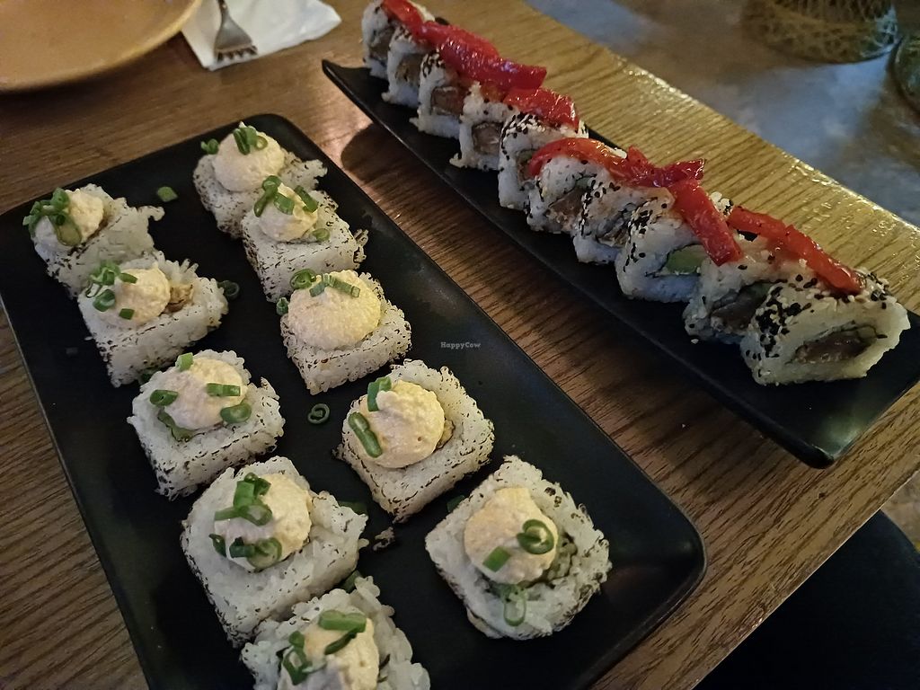 Tempeh and volcano rolls