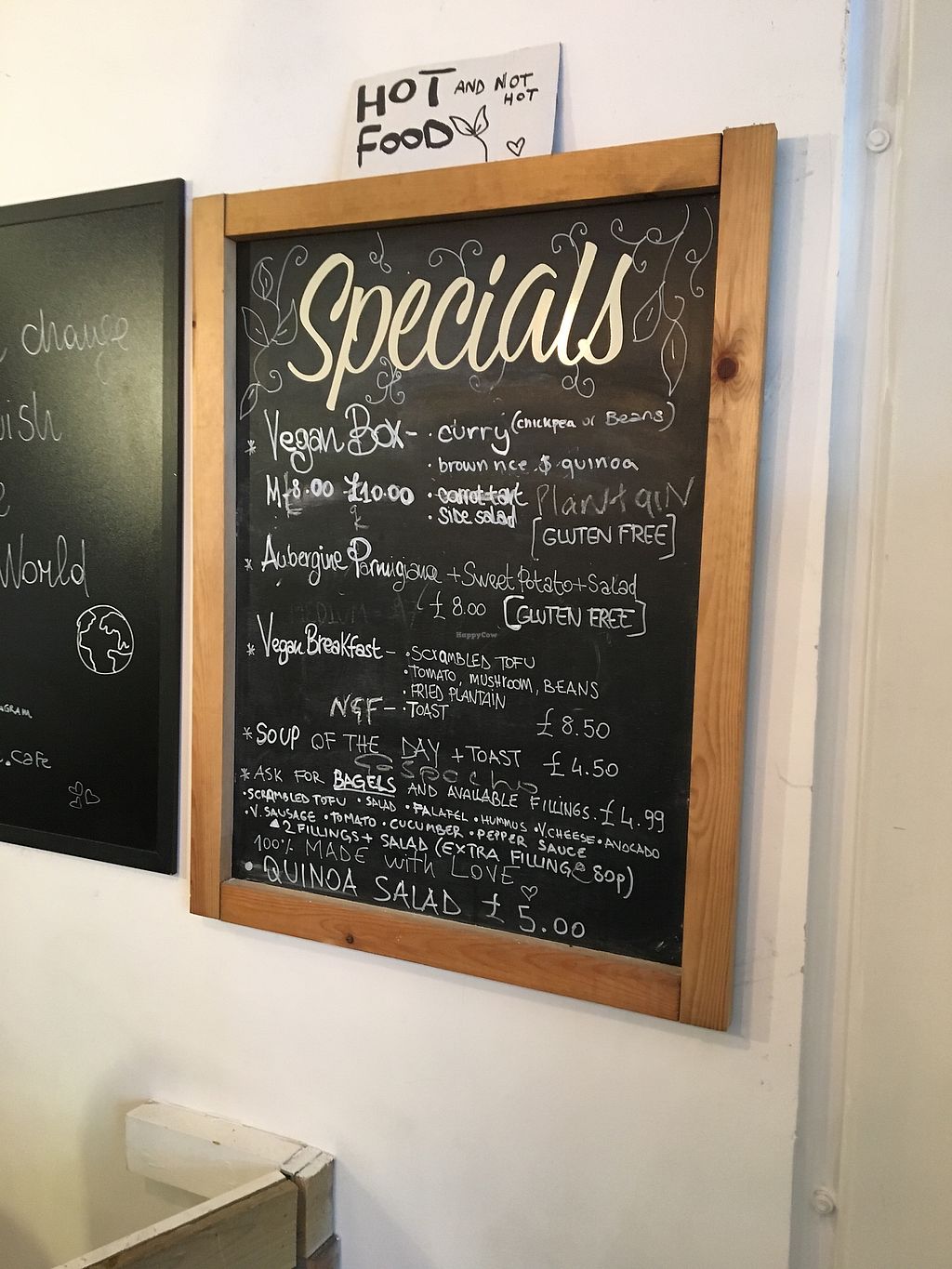 Vegan cafe in Clapham Junction serving coffee and healthy food with gluten-free options. Est. autumn of 2017. Took over the space of previous Without Cafe. Reported closed, December 2018.