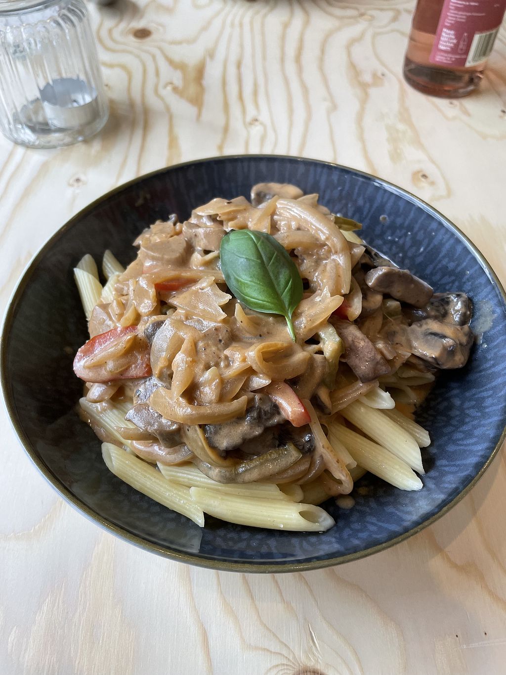 Mushroom goulash and pasta - Plantenköök, Bremen, Germany