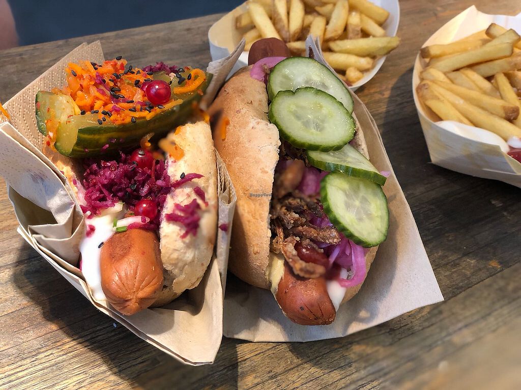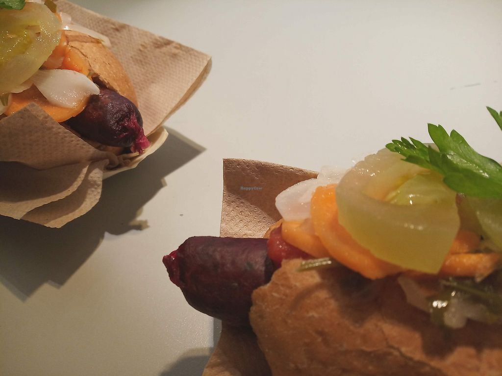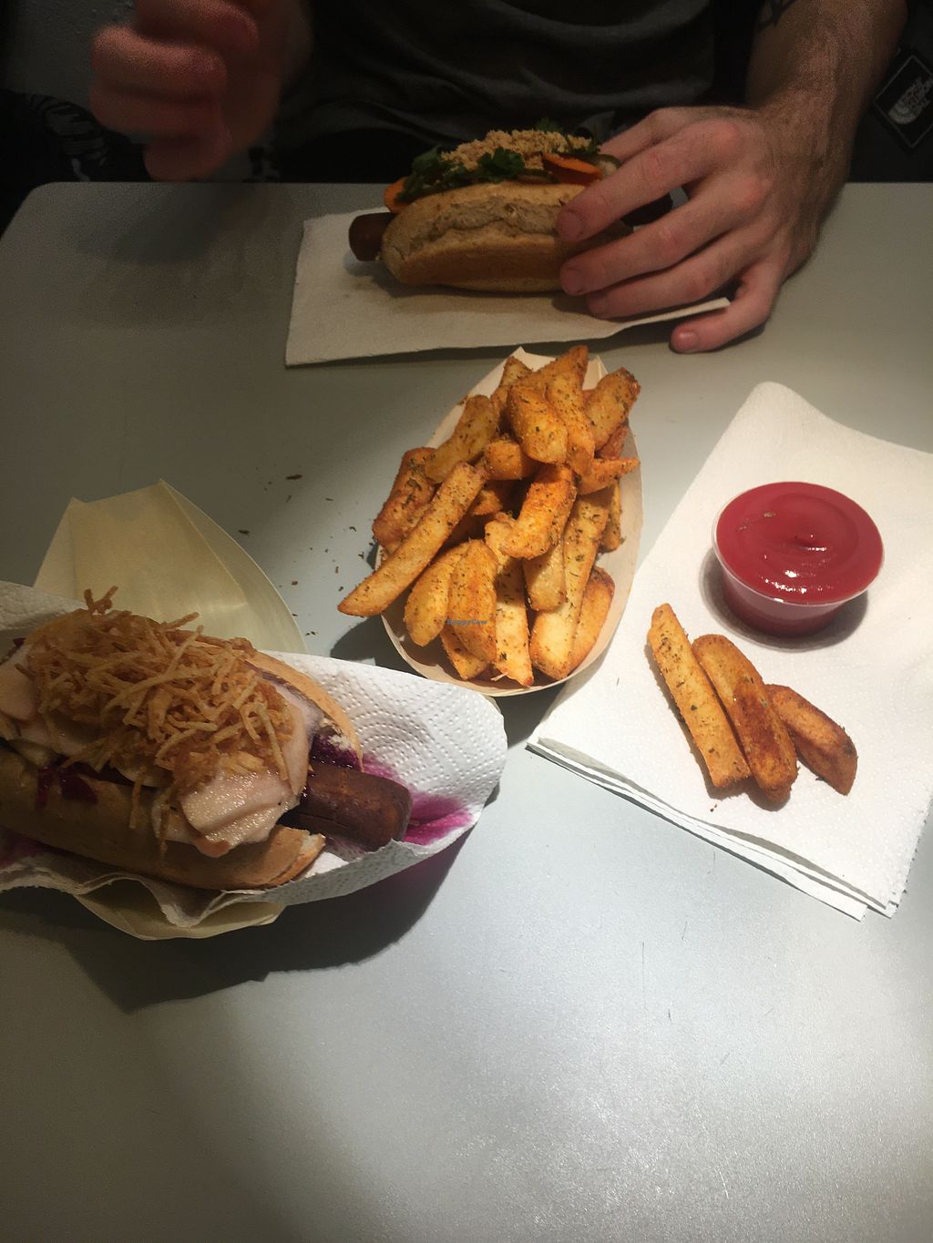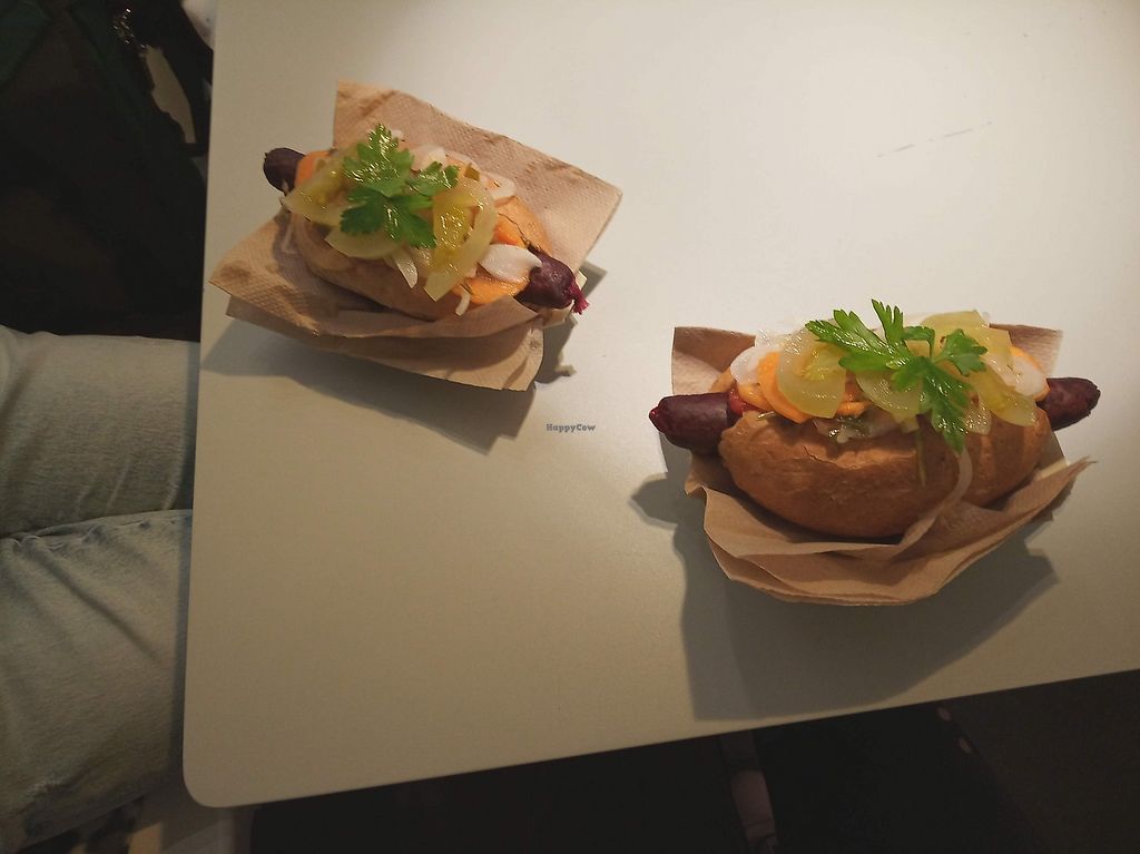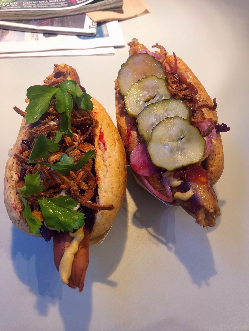 Bbq sausage with kids topping (left), protein sausage with classic top…