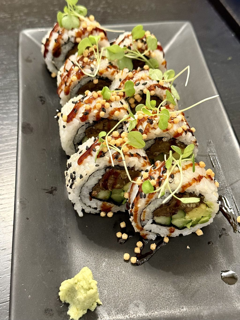 Ordered the vegan unagi roll and fried tuna for delivery. Both were very good and fresh. The tofu cheesecake was not great. They should stop serving honey and go completely vegan imo.