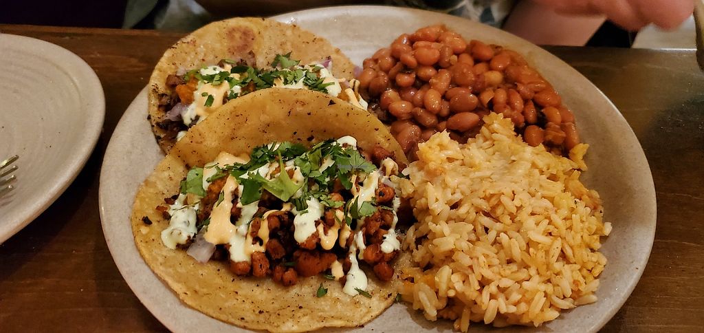 Taco Plate- Mushroom Al Ajillo & Shrimp w/ Rice & Beans