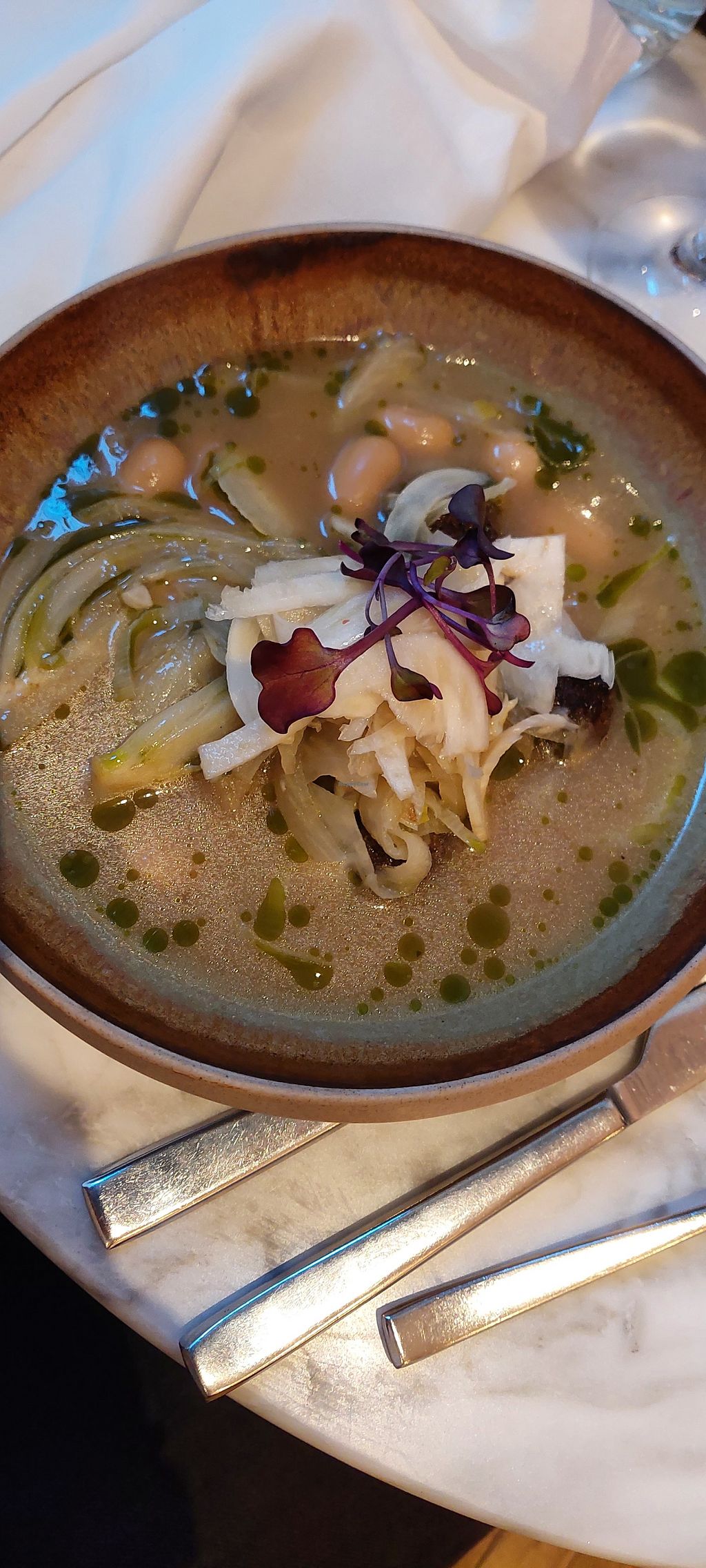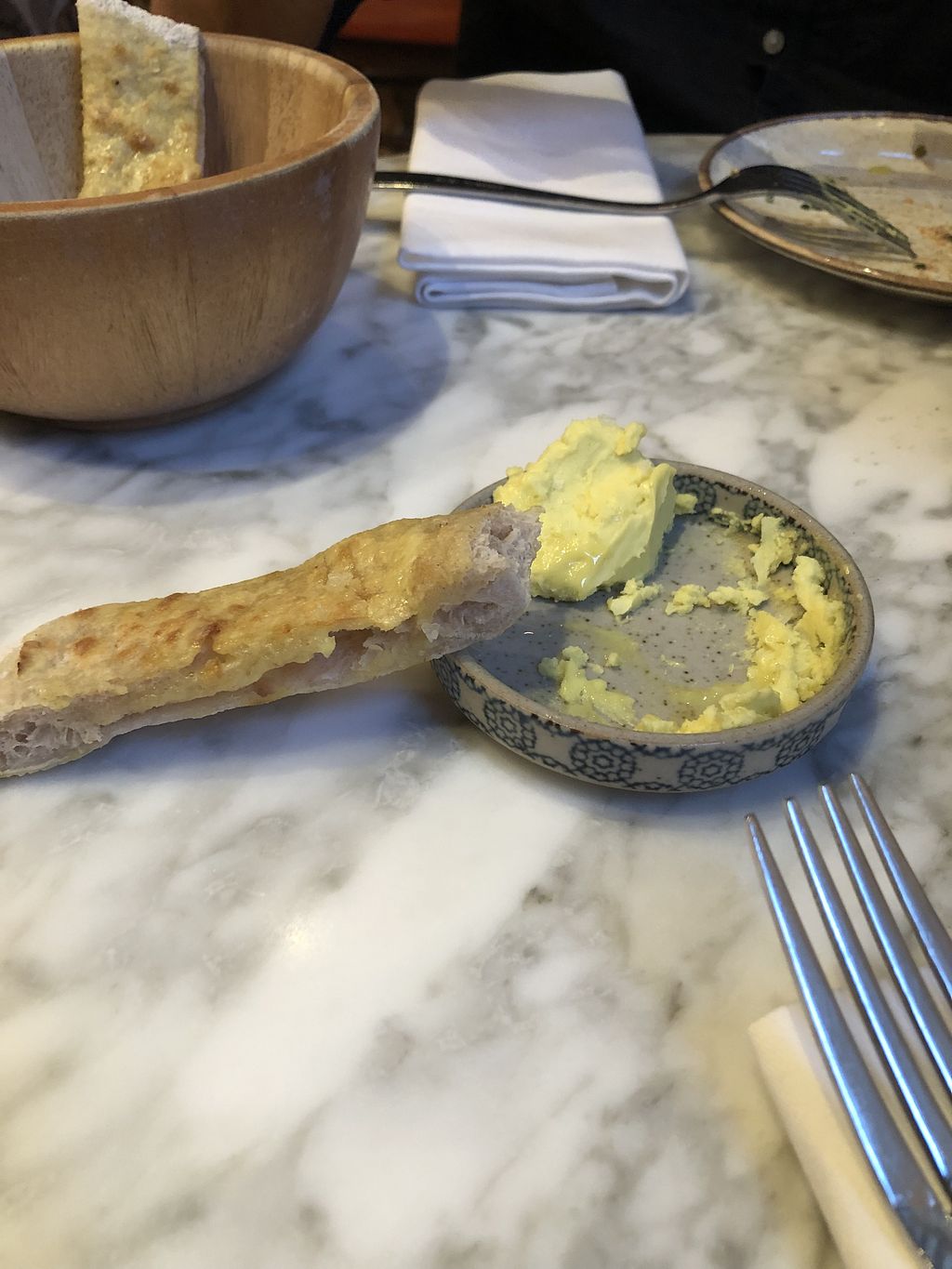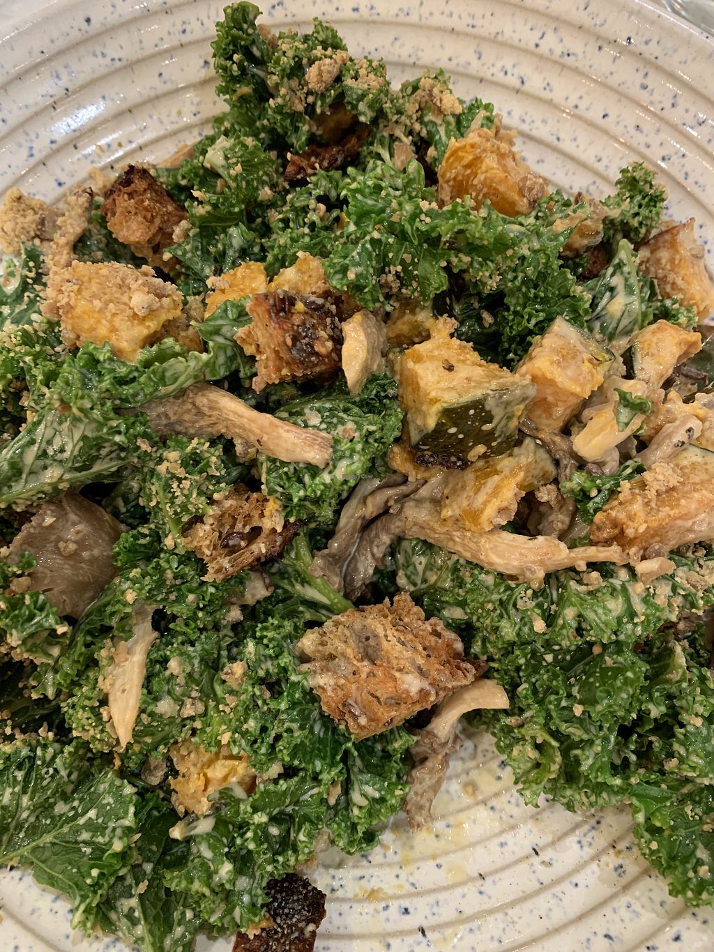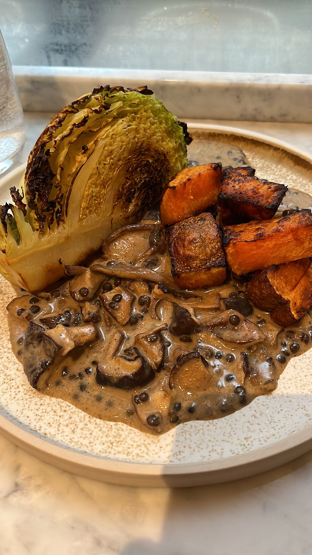 We ate there twice on a recent trip, we went without a reservation and they were fully booked but they were able to seat us at the little bar. While there’s lots of vegan food in London, a lot of it is not healthy so to find a big kale salad (loaded with winter squash, oyster mushrooms and sourdough croutons) as a main was a dream. The sourdough bread, all the veggies, everything was delish albeit a tad rich (lots of nuts and nut butters). We went back for dinner (with a res). The service was nice and efficient and it’s a lovely little spot. It is on the pricier side but worth every penny. On the way to the bathroom downstairs, you pass by the kitchen which was calm and clean, with boxes of beautiful produce all around.