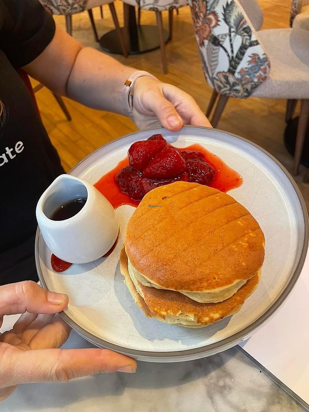 We chose to have breakfast and booked as it can be difficult to get seats at breakfast time. I ordered a long black and was pleasantly surprised how big the cup was. It was a nice coffee. I also ordered vanilla pancakes. The pancakes were 3 small pancakes with syrup and roasted strawberries. I thought the pancakes were a little heavy and dry in terms of texture. They could have been better. My partner had the sourdough with avocado and the bread to avocado ratio seemed a bit off. It was fine, but expensive and I’d expected better.