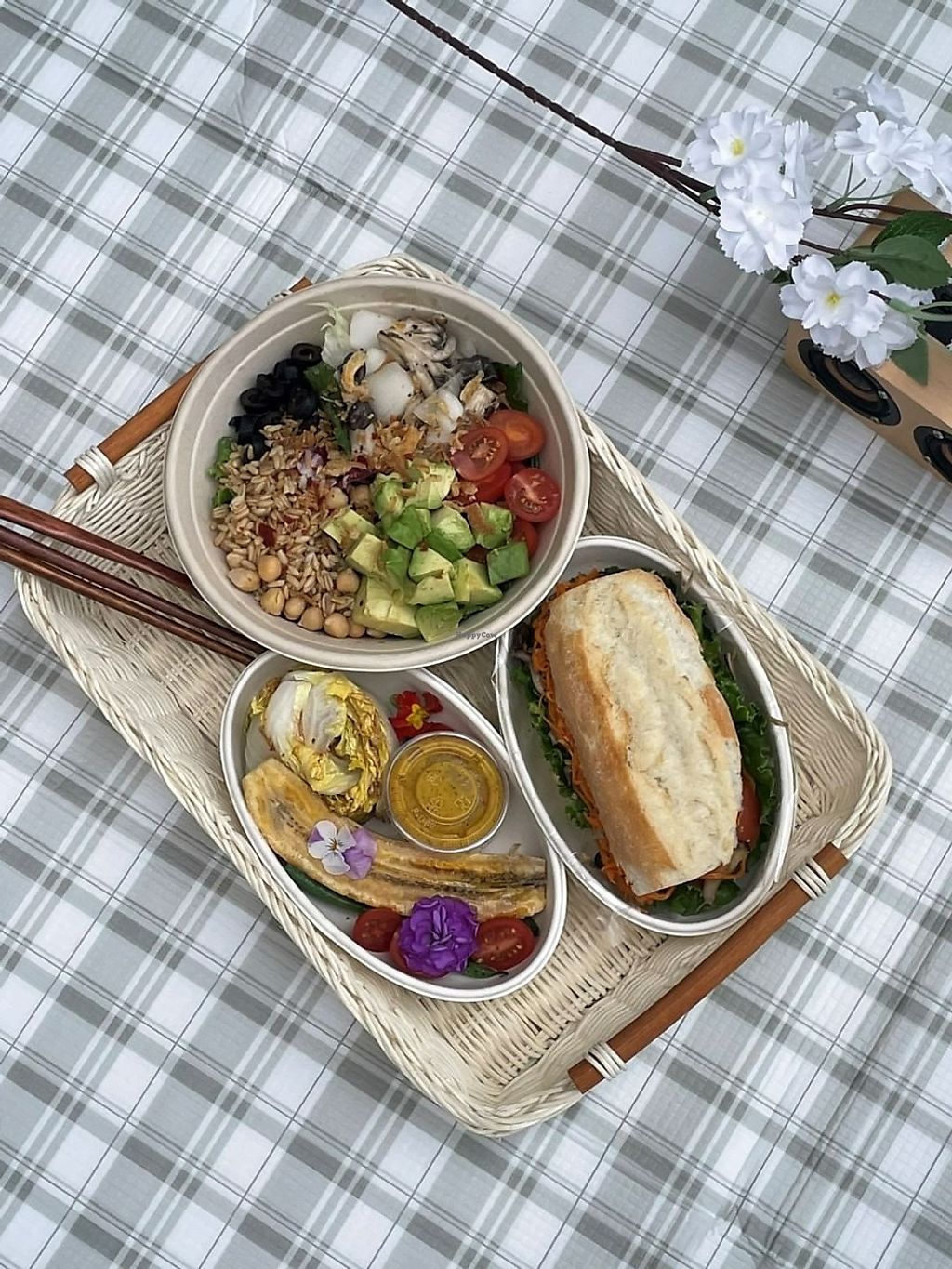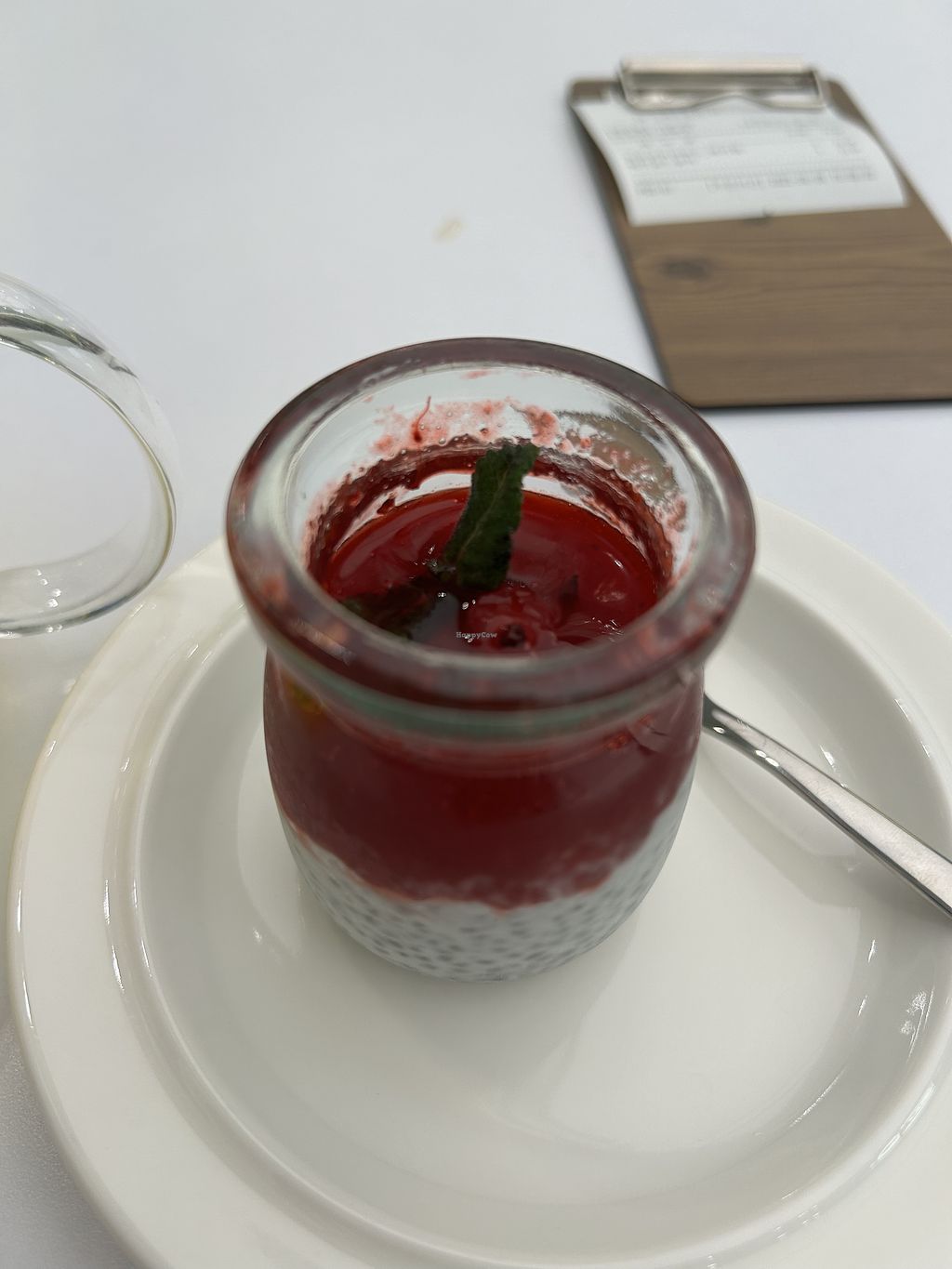 Korean Marigold Tea and the Coconut Chia seed pudding with berry jam -…