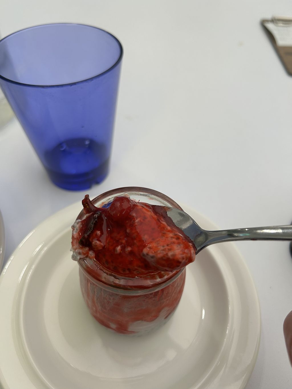 Korean Marigold Tea and the Coconut Chia seed pudding with berry jam