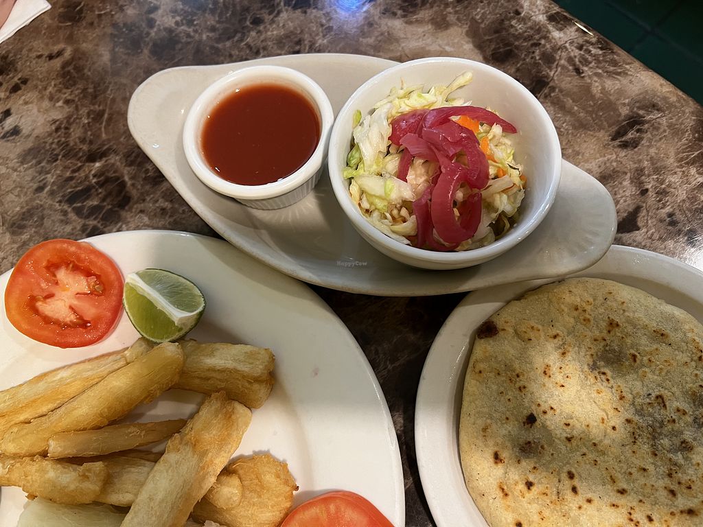 Read moreTry cheese and loroco pupusas and other cheese varieties. The fried yucca with cabbage is SO good and so vegan! The horchata is a rice drink different than the Mexican variety it has or heat and cinnamon. The atol de elote is hearty corn sweet drink that is filling and satisfying. The chocolate caliente is also different from the American version.