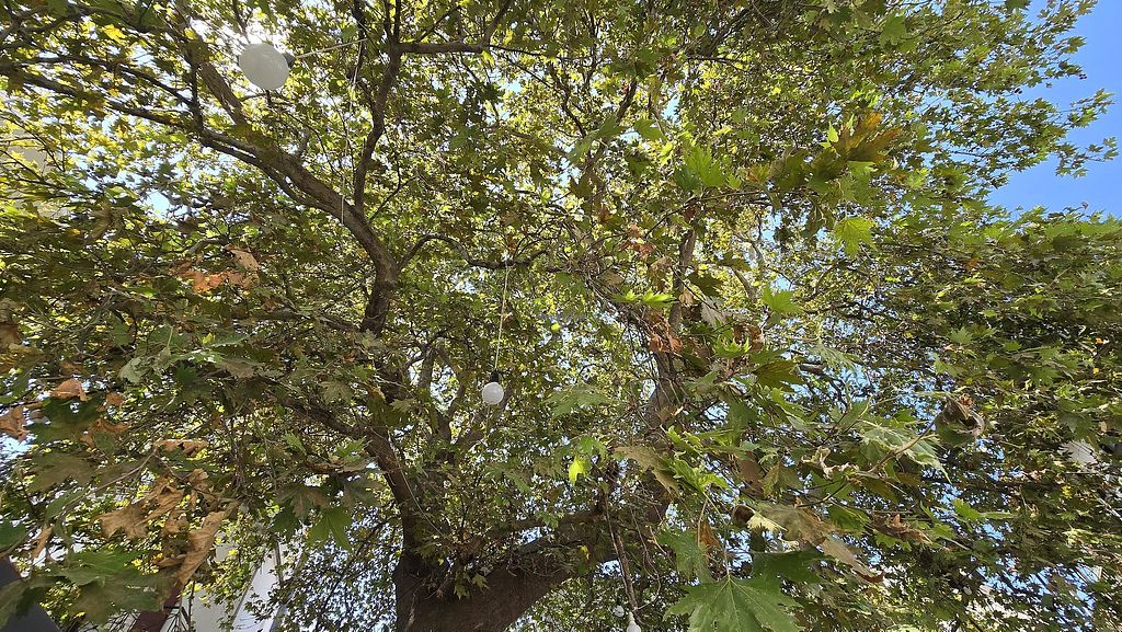 Serves meat, vegan options available. Located in the Skopelos Port area under a massive tree. Vegan options include briam (oven-baked vegetables), stuffed tomatoes, Skopelos salad without cheese, and homemade pita bread. Open Mon 12:00pm-5:00pm, Tue-Sun 12:00pm-12:00am.