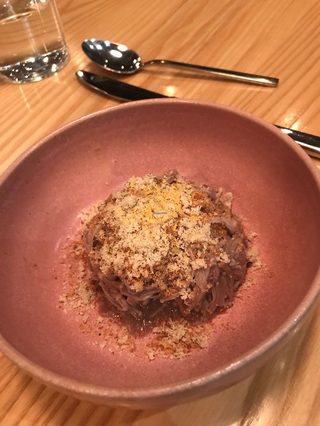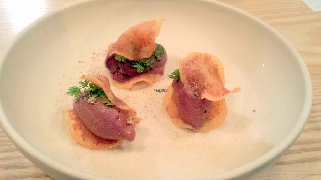 We ended up having five courses, including dessert, and each one was very interesting and different from the norm. I particularly liked the dessert, which was essentially soft-serve chocolate vegan ice cream sandwiched between two potato chips. It sounds a little strange, but it tasted really nice!