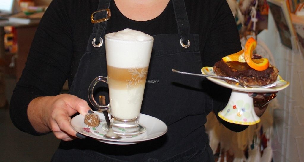 Vegetarian bio cafe in a spiritual book/gift store. Serves vegetarian lunch and cakes. Also has (clearly labeled vegan) and gluten-free options. Reported closed November 2021.