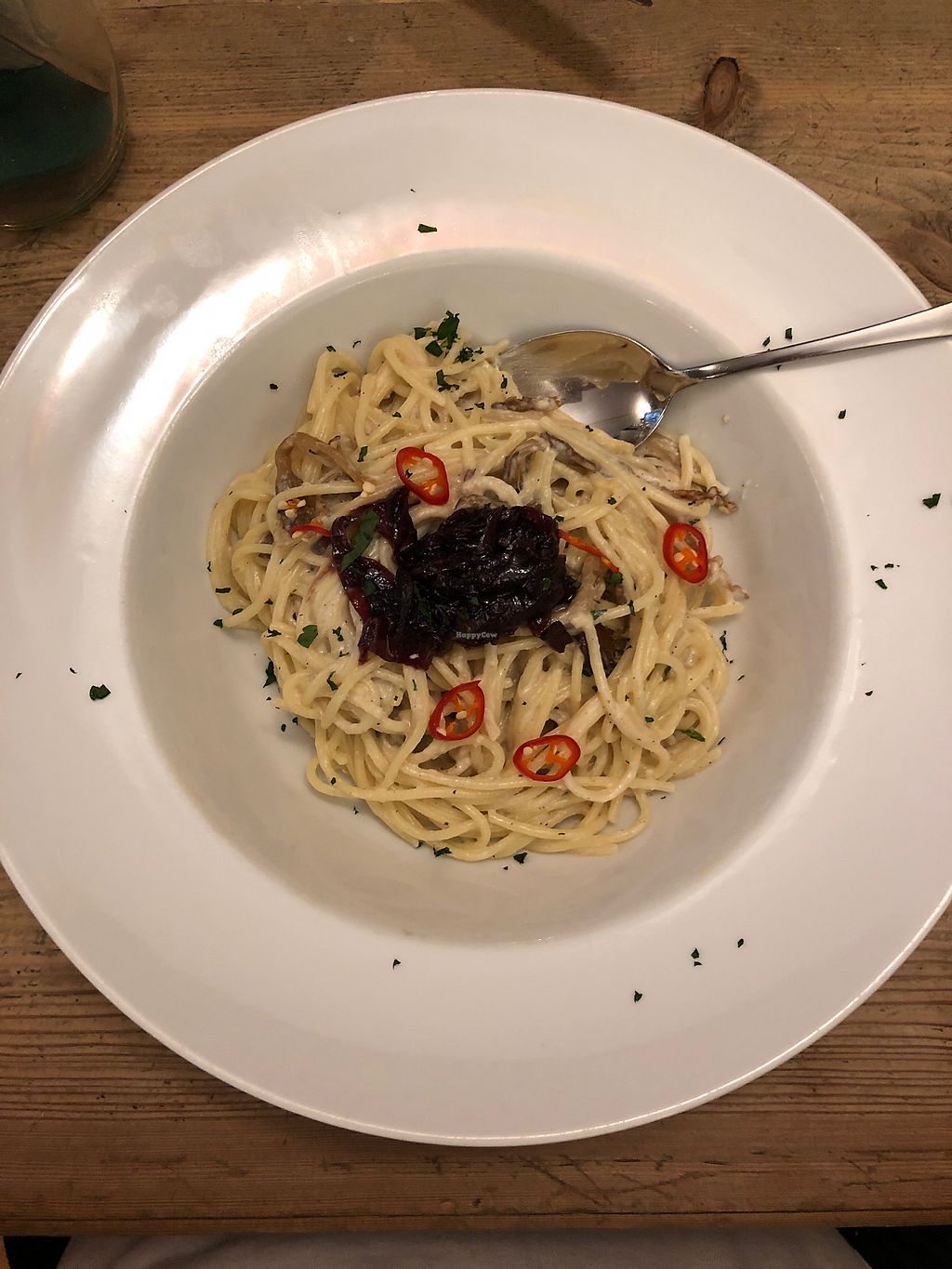 My spouse had the mushroom risotto and I had the raw zucchini noodles with the walnut pesto. Both dishes were absolutely delicious, especially the raw spaghetti were heavenly. A touch too salty for those of us who eat with barely any salt, but it was still really yummy. Excellent service too, at my request they were kind enough to make a jar of plain cucumber juice for me. The homemade forest berry lemonade was the best I've had in a very long time. The atmosphere is great too, very very cozy and comfortable. We loved the place and would come back any time.
