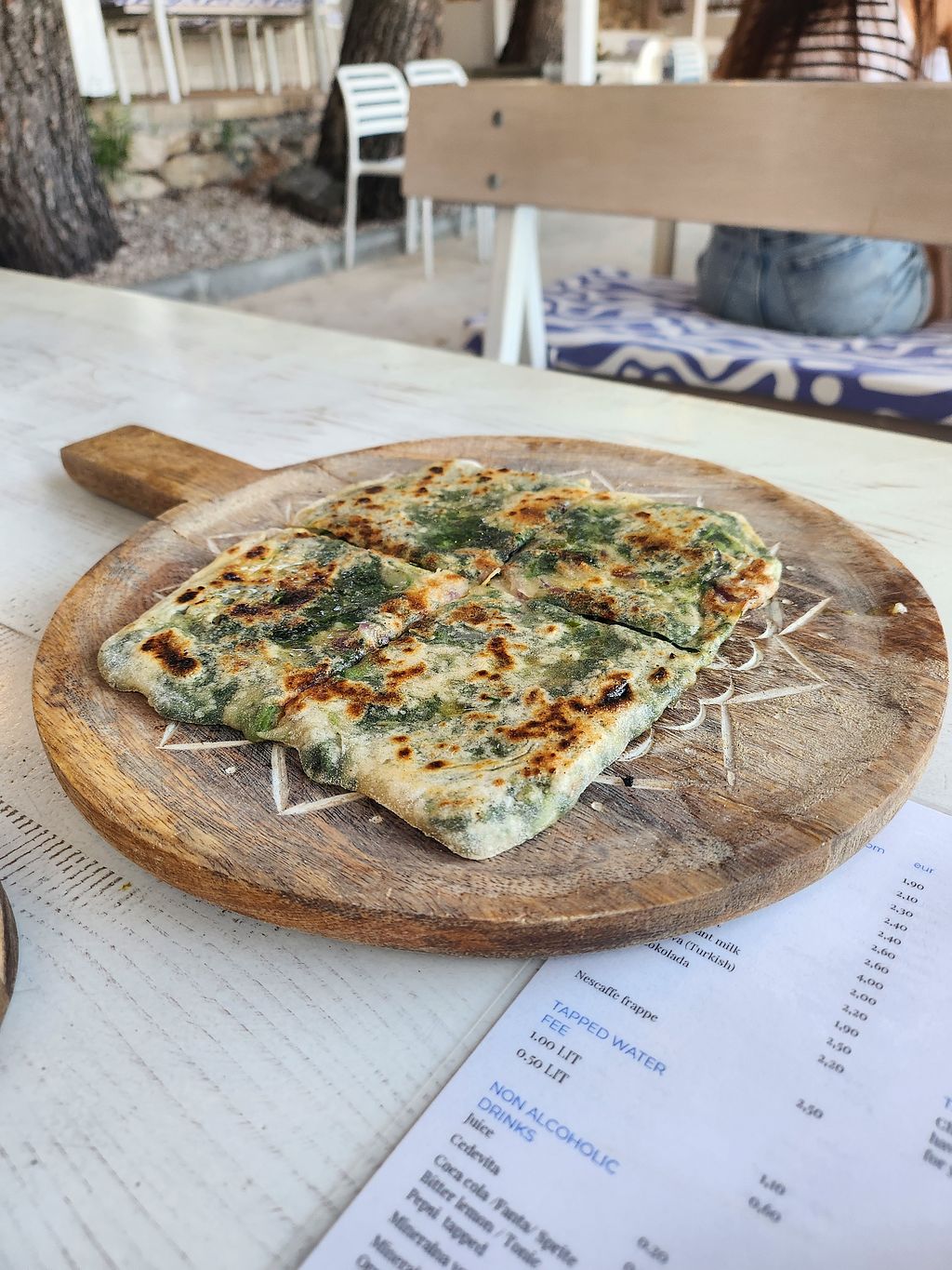 This restaurant is right by the beach, lovely terrace amongst trees and a whole vegan menu which was tasty!
