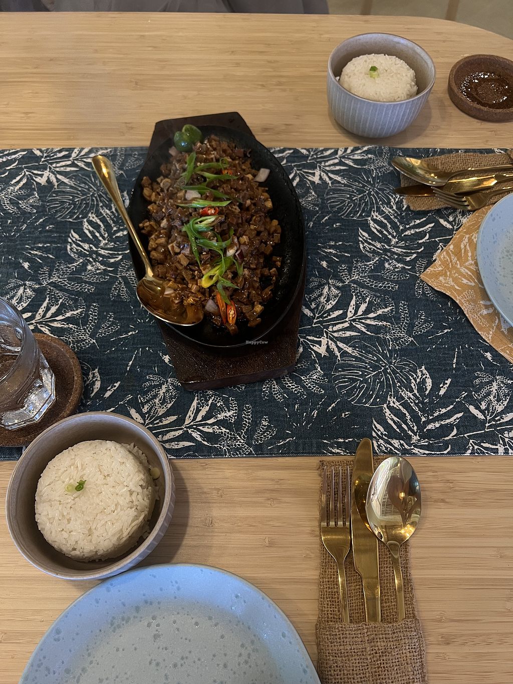 Read moreThe atmosphere is nice and the restaurant is lovely. I tried the Sizzling tofu and Mushroom Sisig (a Filipino dish) and it was delicious! Big portion as well.