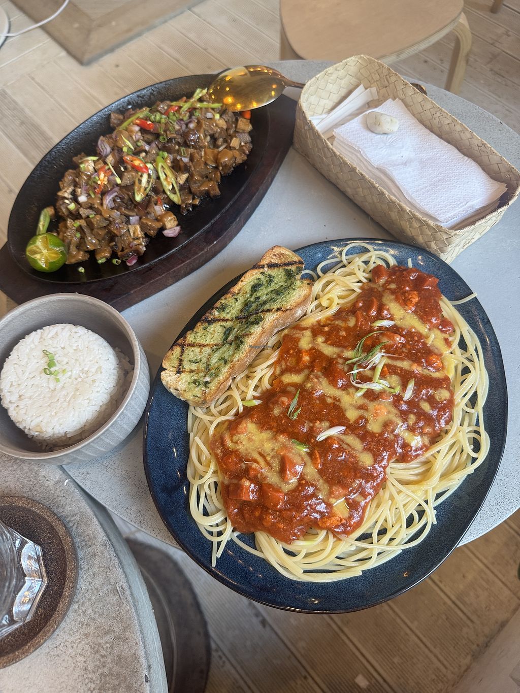 Stunning view by the beach and yummy food with traditional filipino meals on the menu!