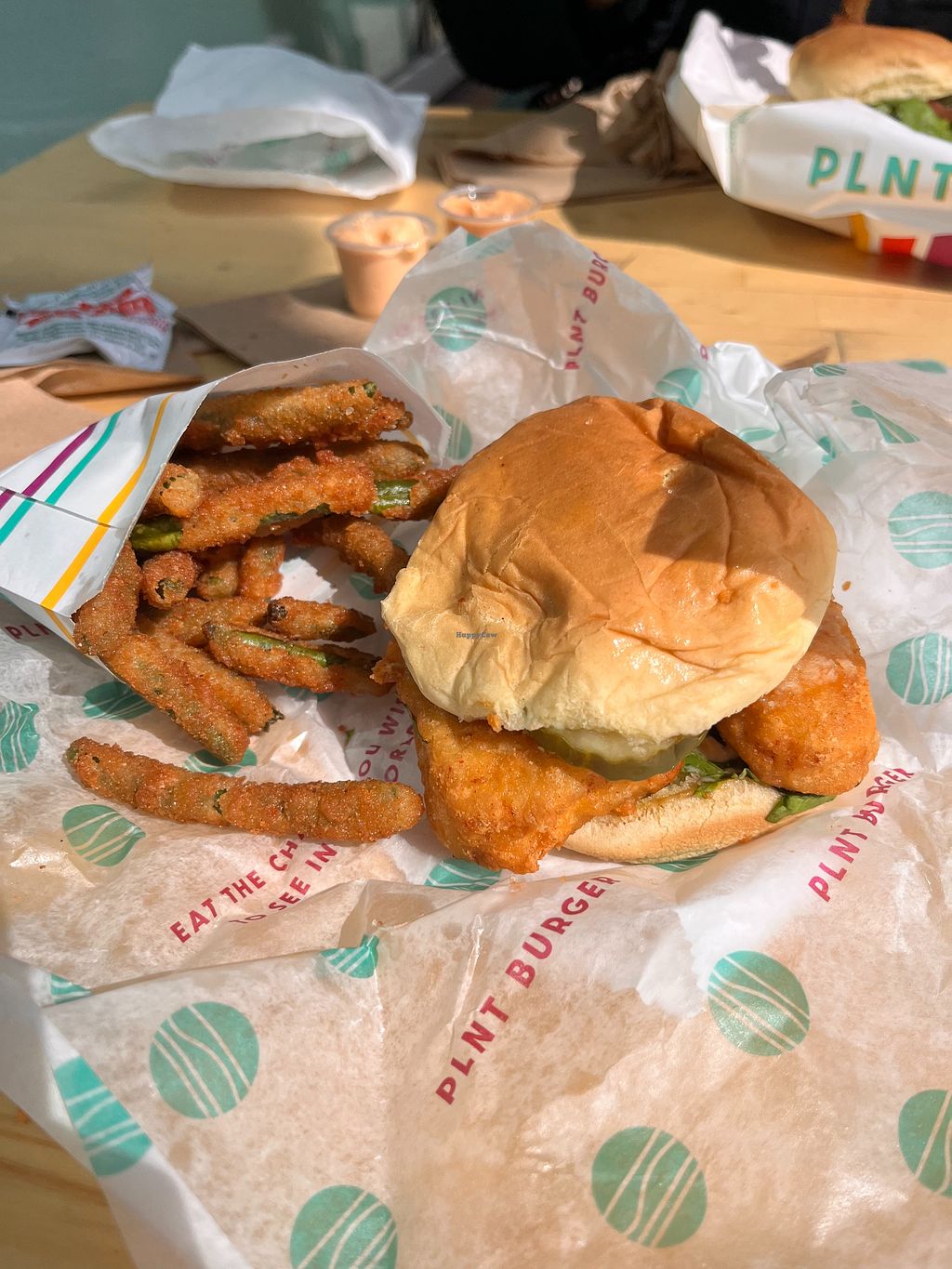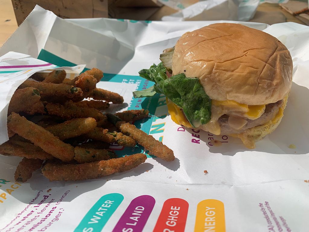 Read moreThe food is tasty. Green bean fries are great. The burger is basic, lost in the mounting noise of the “beyond” burger” culture. The fish sandwich uses the Gardein fish strips (if I’m not mistaken), which is a quality product. Some creativity is lost in only providing the vegan versions of staple fast-food offerings.