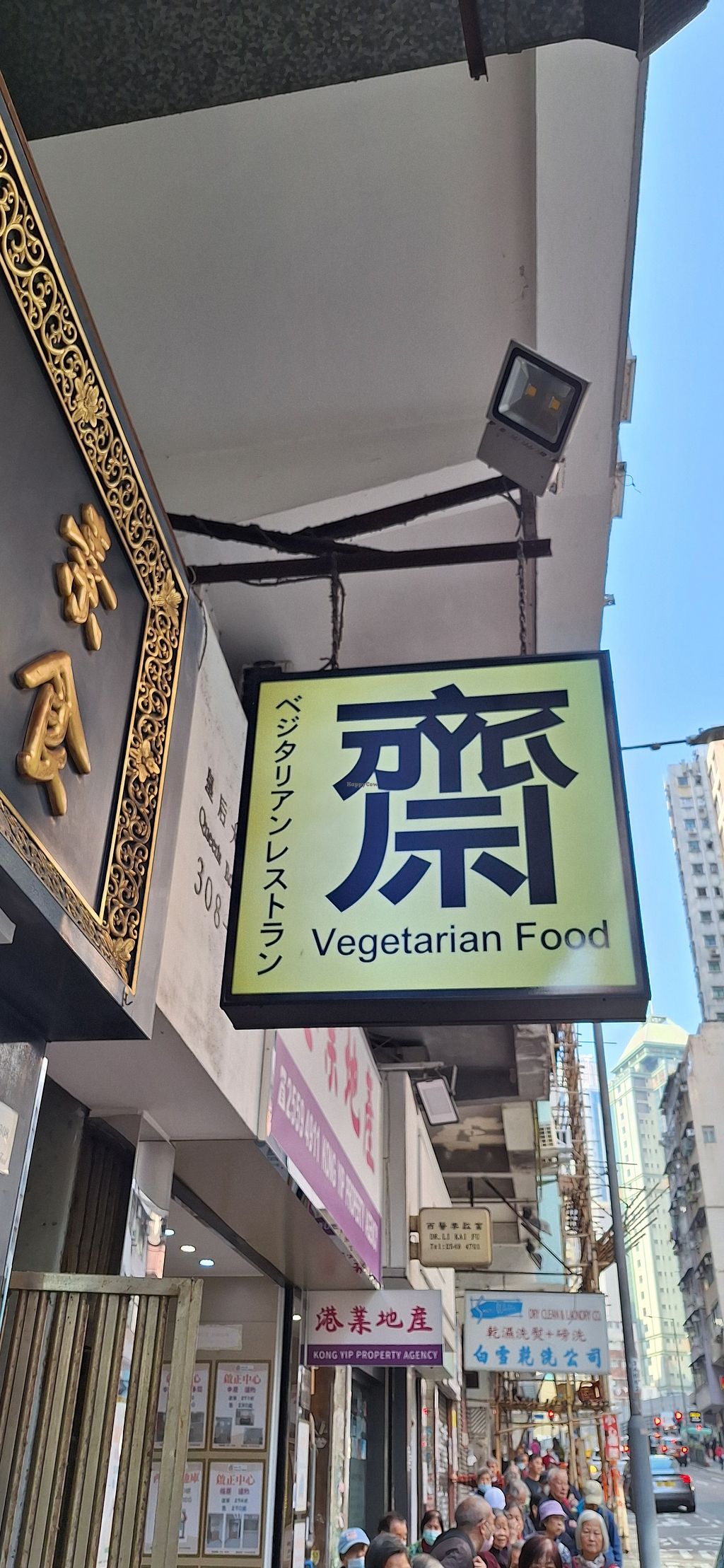 Very simple Cantonese ovo-vegetarian family-owned cafe. Usually some of the staff speak basic English. Plenty of vegan choices. Low prices. Sit down/take-away/dim-sum. Popular with locals. About 20 seats. They have a second location which is a 'takeaway only' counter at 604 Queens Road West - Kennedy Town - Hong Kong Island. Open Mon-Sun 8:00am-8:00pm.