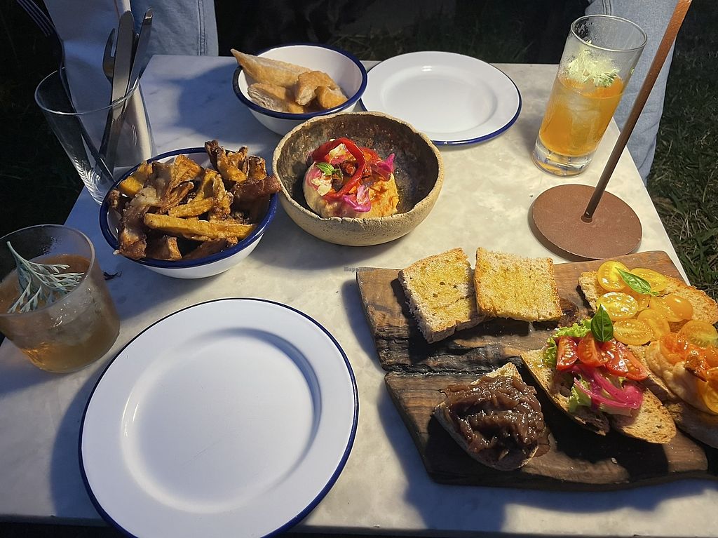 Excellent drinks with some vegan tastings. We ate a plate with mixed bruschetta and it was refined and excellent. On some evenings the service is a bit slow as the place is very popular.