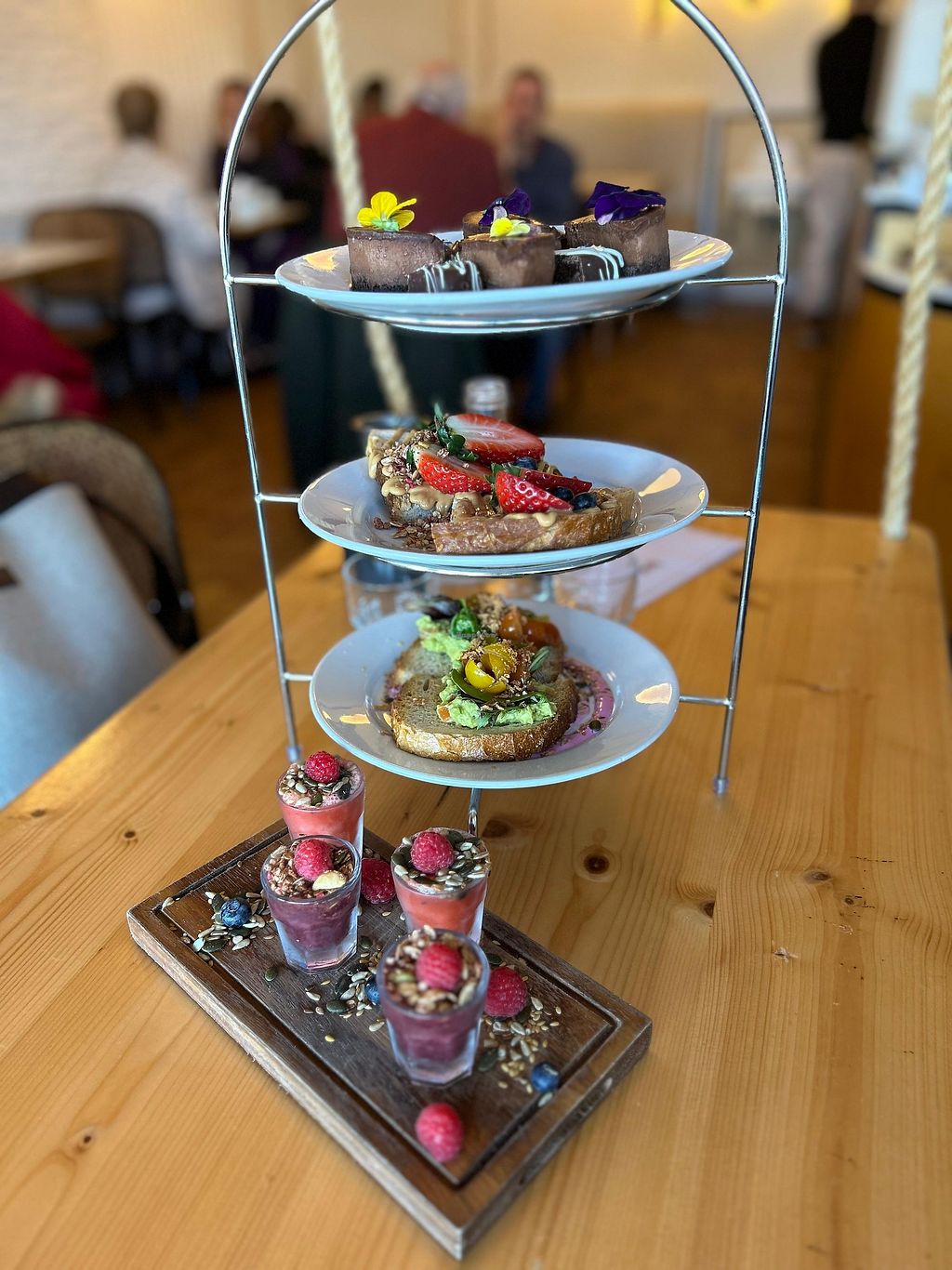 Was wäre ein Trip nach Dublin ohne eine Teatime? Das Angebot für die Teatime im Pòg war im Vergleich zu anderen Anbietern günstig (38€ pP inkl. unbegrenzt Tee und Kaffee.) Dazu gab es Falaffel Wraps, zweierlei Toasts (einmal süß, einmal herzhaft), Smoothie Shots, Brownies und Schokoladenkuchen. Die Menge war genau richtig, liebevoll angerichtet und bei der schönen Aussicht ließen wir es uns nach unserer Wanderung über die Klippen von Howth doppelt gut schmecken.