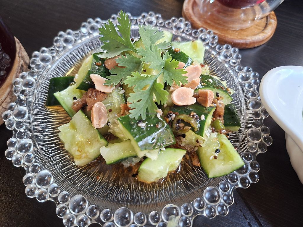 Cucumber salad and a side of tempeh