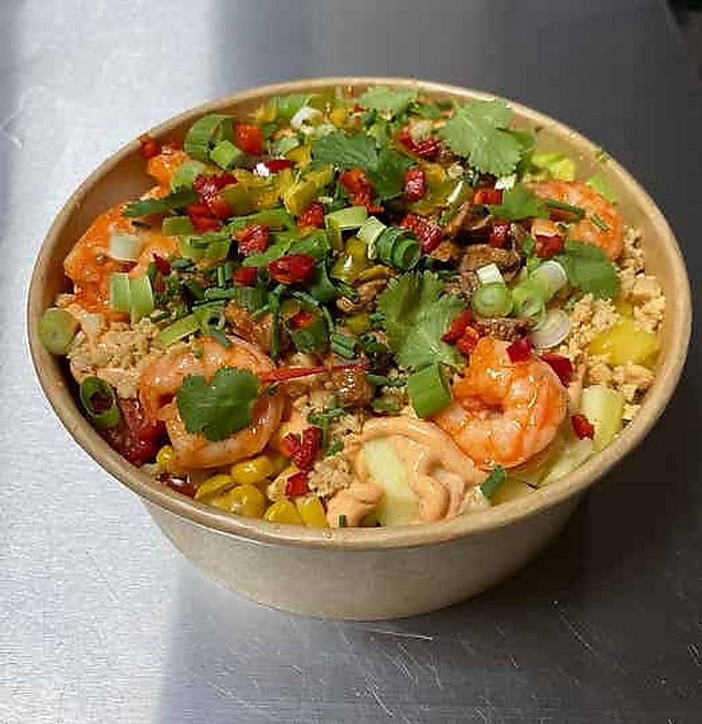 Serves meat, vegan options available. Eatery serving custom poke bowls and ramen with vegan options. Open Mon-Tue 11:00-14:00, Tue 18:00-22:00, Thu-Fri 11:00-14:00, Thu-Sat 18:00-22:00, Sat-Sun 11:30-14:30, Sun 18:30-22:00. Closed Wed.