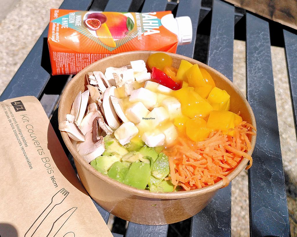 Read moreAs with other poké bowl restaurants, you can customize it, and you can choose a base from rice, quinoa or lettuce; then you choose a protein (tofu is the only vegan one). Next, you choose vegetable toppings (avocado/tomato/radish/etc.) and a sauce.