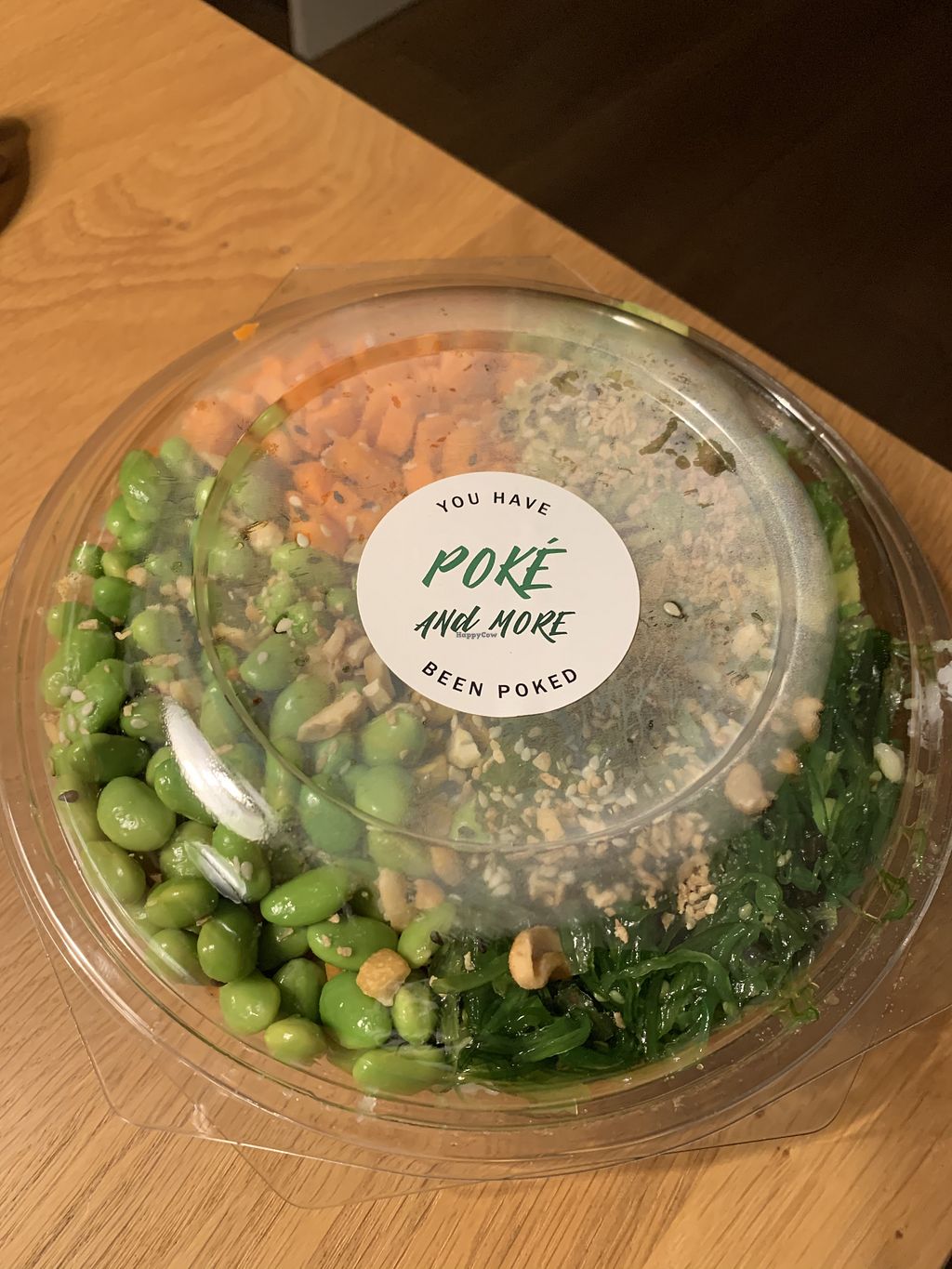 Serves meat, vegan options available. Poke restaurant with the choice of vegetarian shrimp and other vegan items for poke bowls. Reported closed August 2022.
