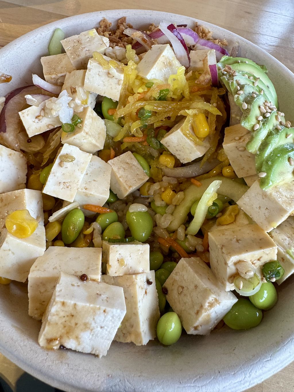 Serves meat, vegan options available. Quick-service restaurant offering vegan poké bowls, spring rolls, mixed vegetable bowls, and seaweed-wrapped burritos. Topping options include tofu and avocado. Open Tue-Thu 11:00am-8:00am, Fri-Sat 11:00am-8:30am, Sun 12:00pm-8:00am. Closed Mon.