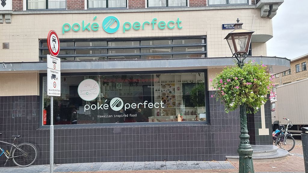 Serves meat, vegan options available. Dutch poké chain with vegan choices. Menu includes three vegan poke bowls which include vegan salmon, sticky tempeh and miso tofu as well as customizable bowls. Also offers side dishes such as seaweed salad, vegan spring rolls and pickled vegetables. Open Mon-Sun 11:30-21:00.